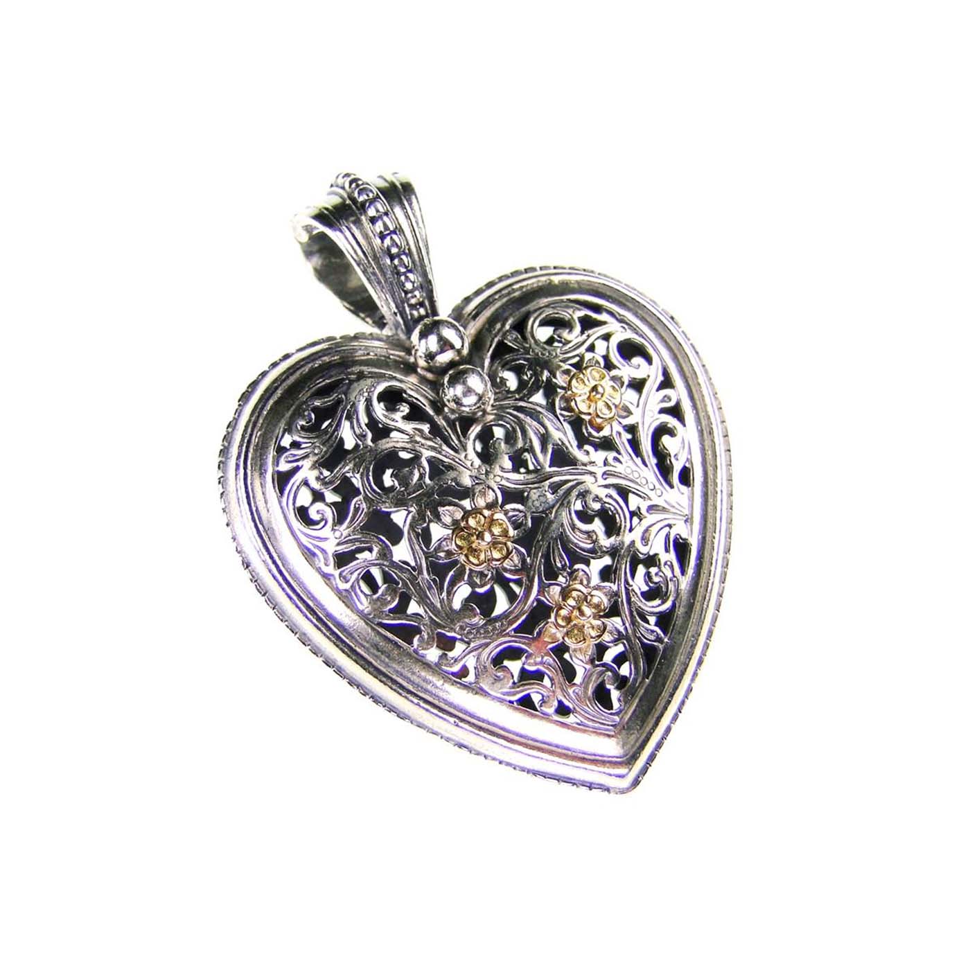 Greek Jewelry, Heart Byzantine Pendant for Ladies in 18k Yellow Gold and Silver 925
