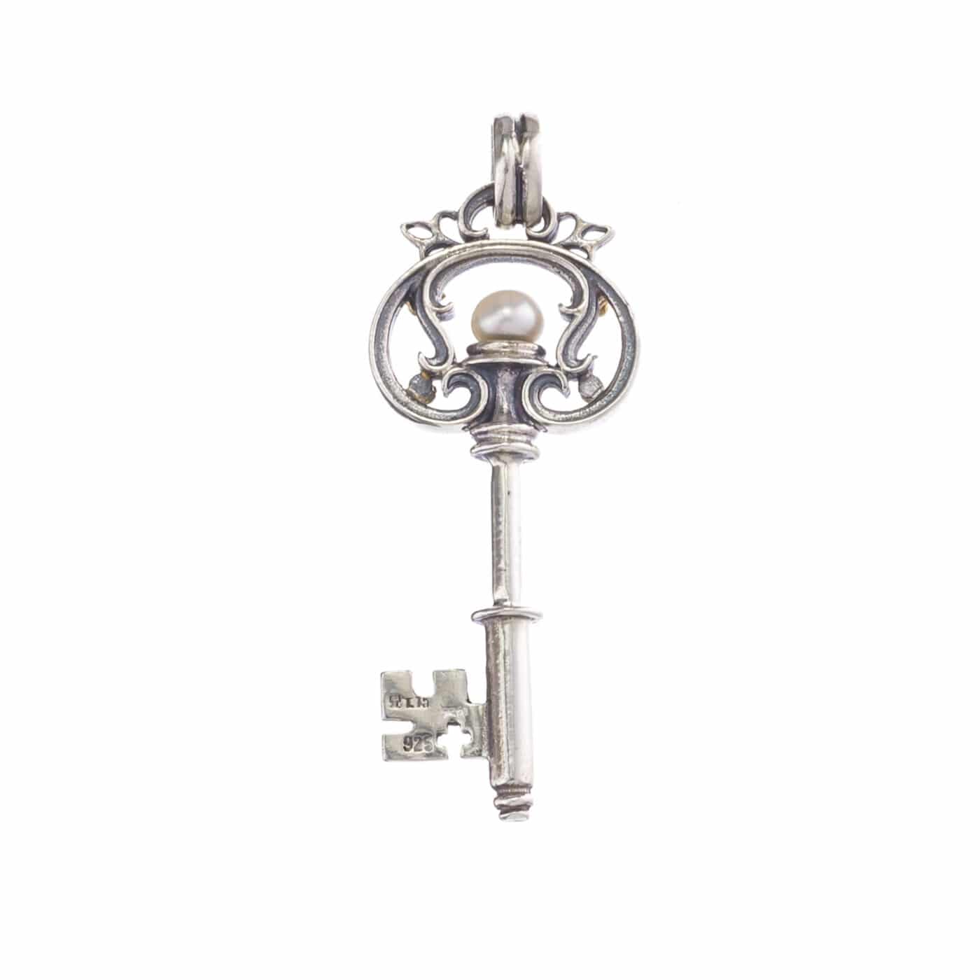 Greek Jewelry, Key Pendant for Ladies in 18k Yellow Gold and Silver 925