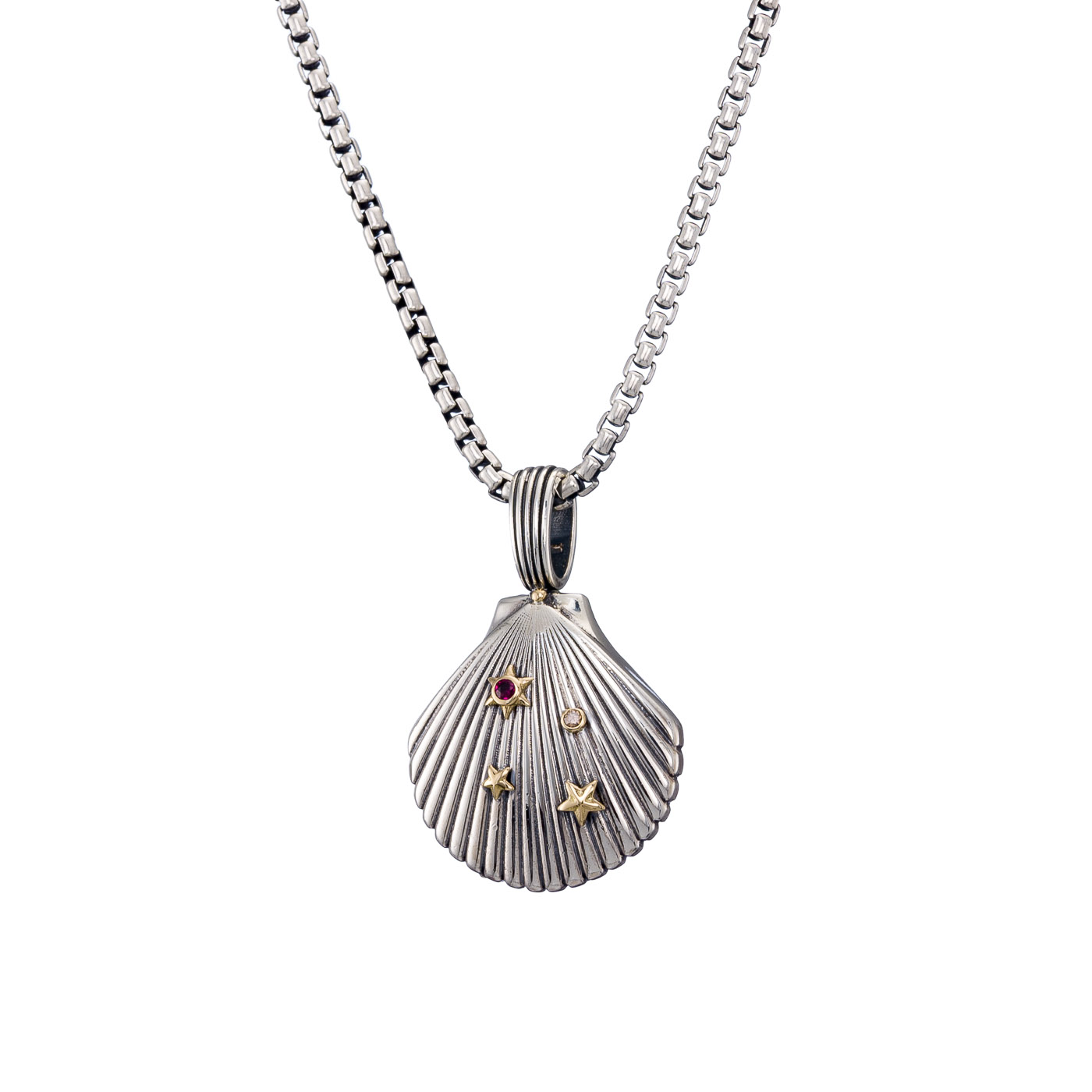 Seashell Pendant in 18k Yellow Gold and Sterling Silver