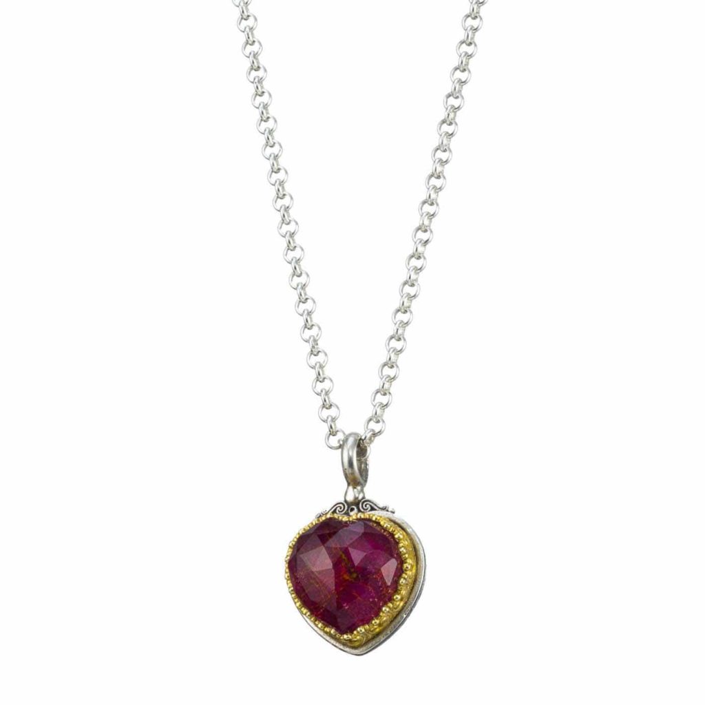 Greek Jewelry, Heart Pendant in Sterling Silver 925 with Gold plated parts