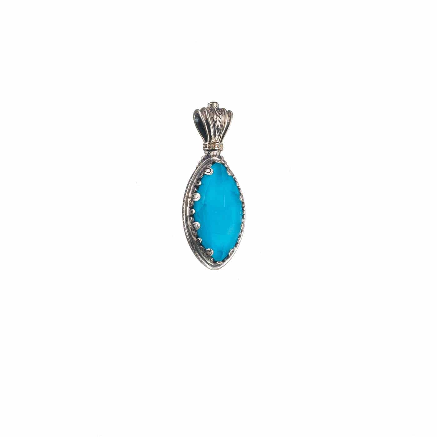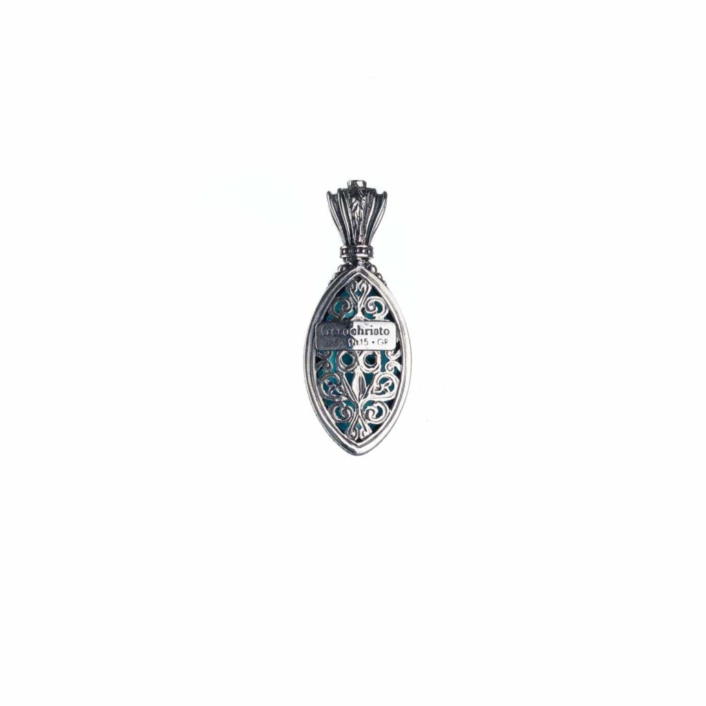 Greek Jewelry, Navette Color Pendant in Sterling Silver 925
