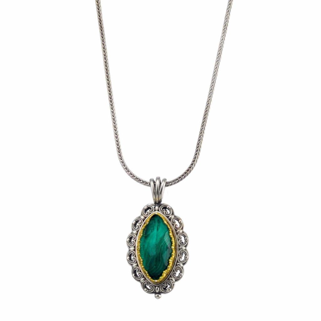Greek Jewelry, Navette Color Pendant in Sterling Silver 925 with Gold plated parts