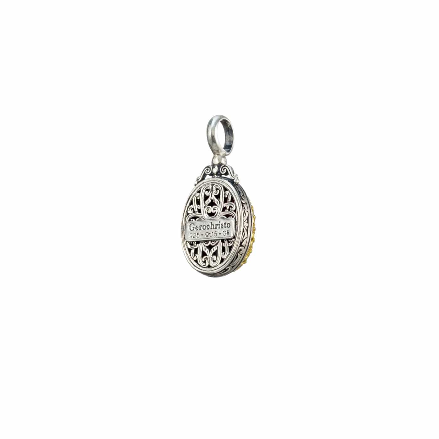 Greek Jewelry, Oval Pendant in Sterling Silver 925 with Gold plated parts