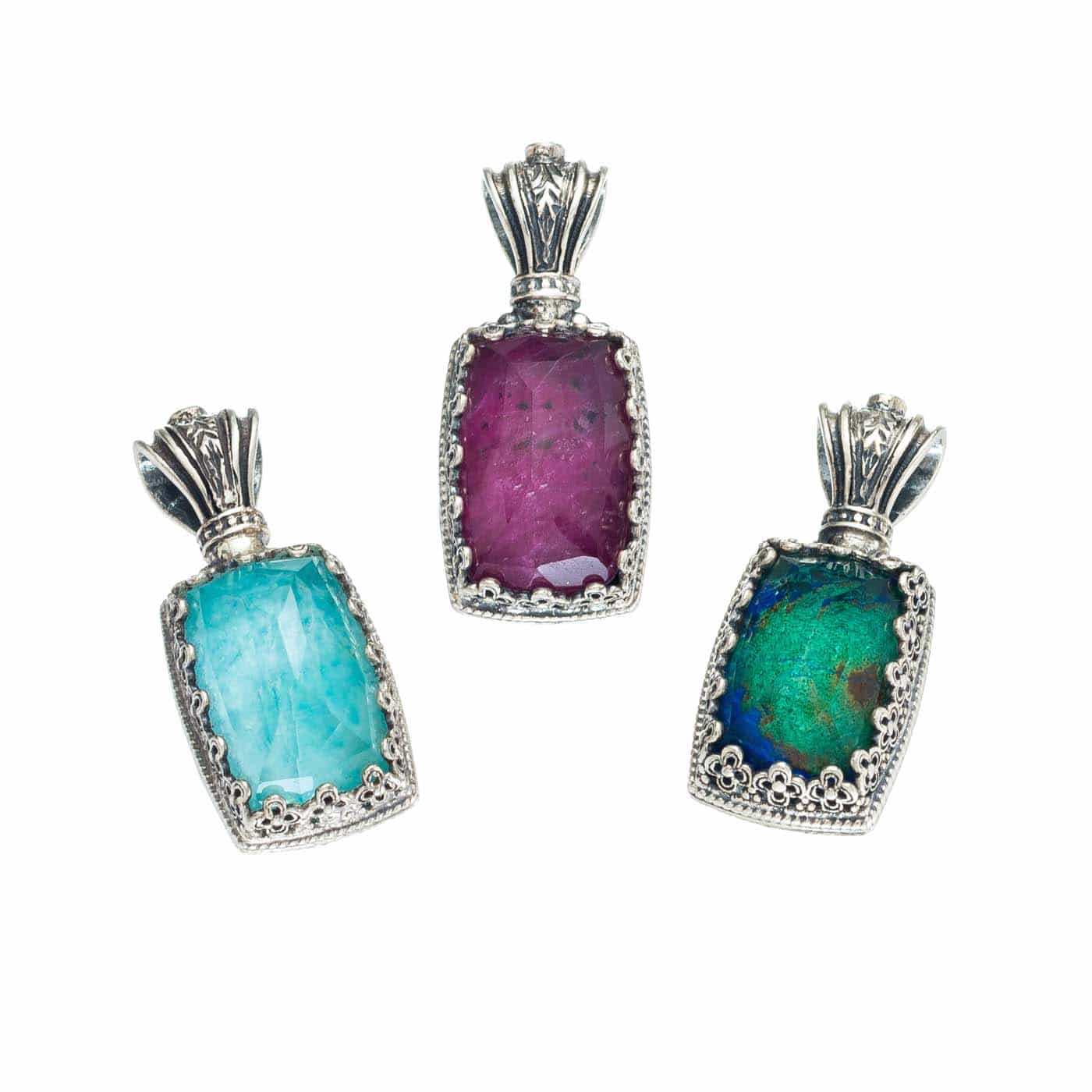 Greek Jewelry, Rectangular Color Pendant in Sterling Silver 925