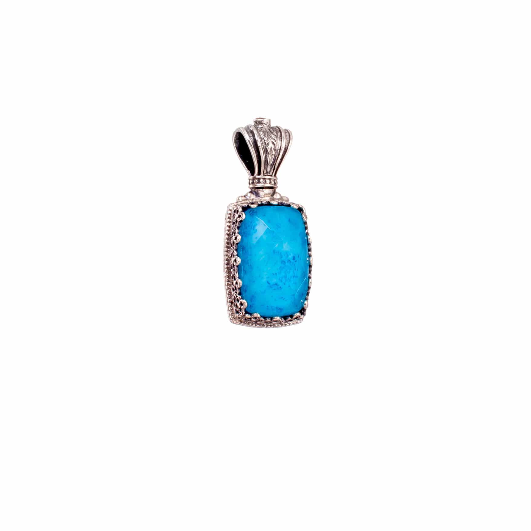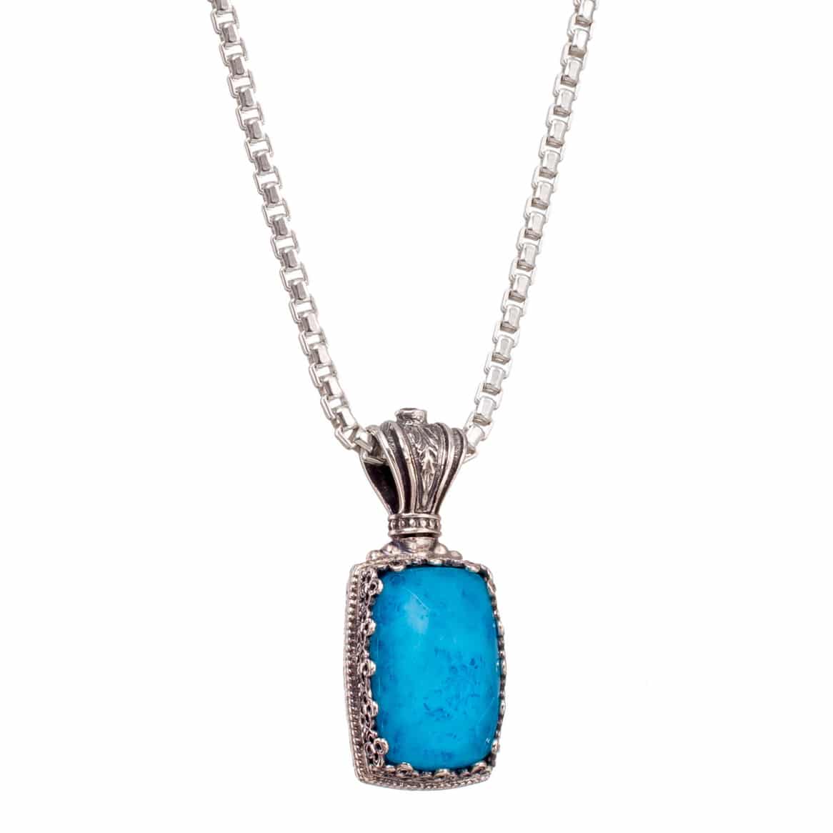 Greek Jewelry, Rectangular Color Pendant in Sterling Silver 925