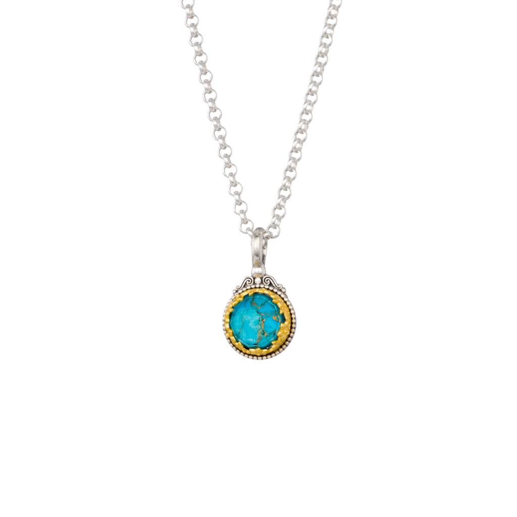 Greek Jewelry, Round Pendant in Sterling Silver 925 with Gold plated parts