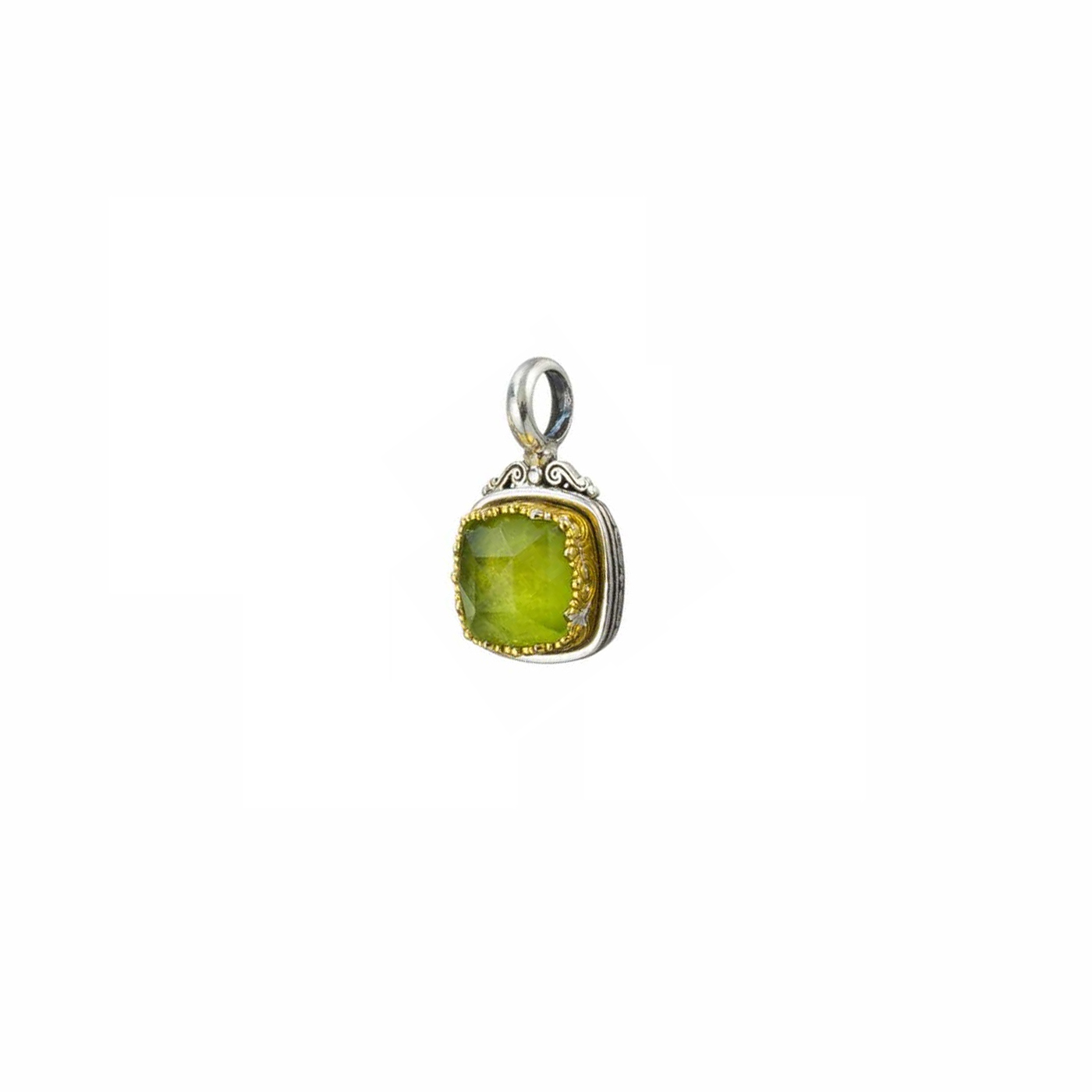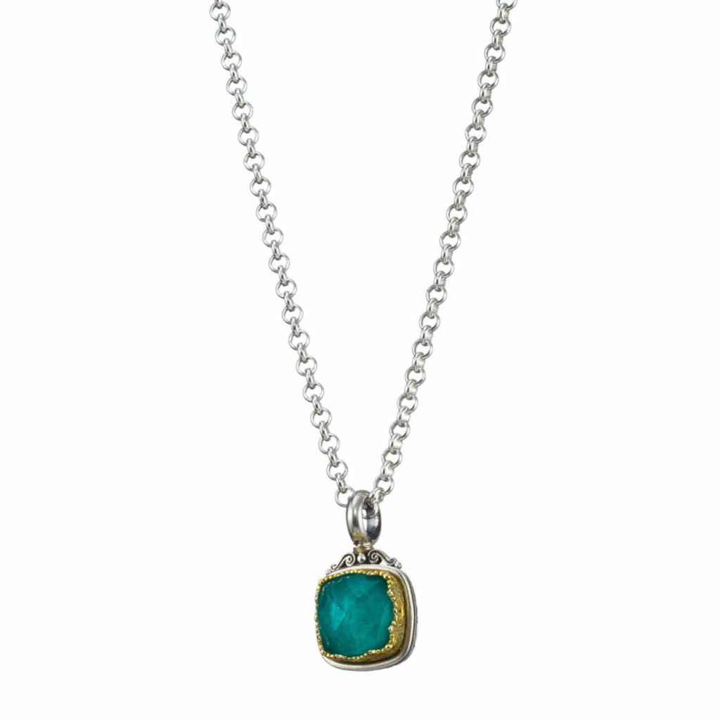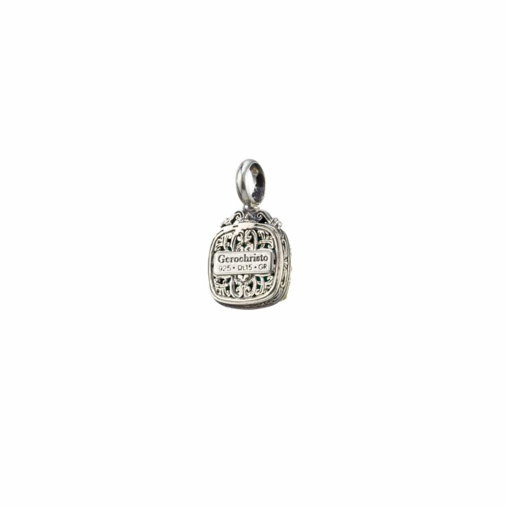 Greek Jewelry, Square Pendant in Sterling Silver 925 with Gold plated parts