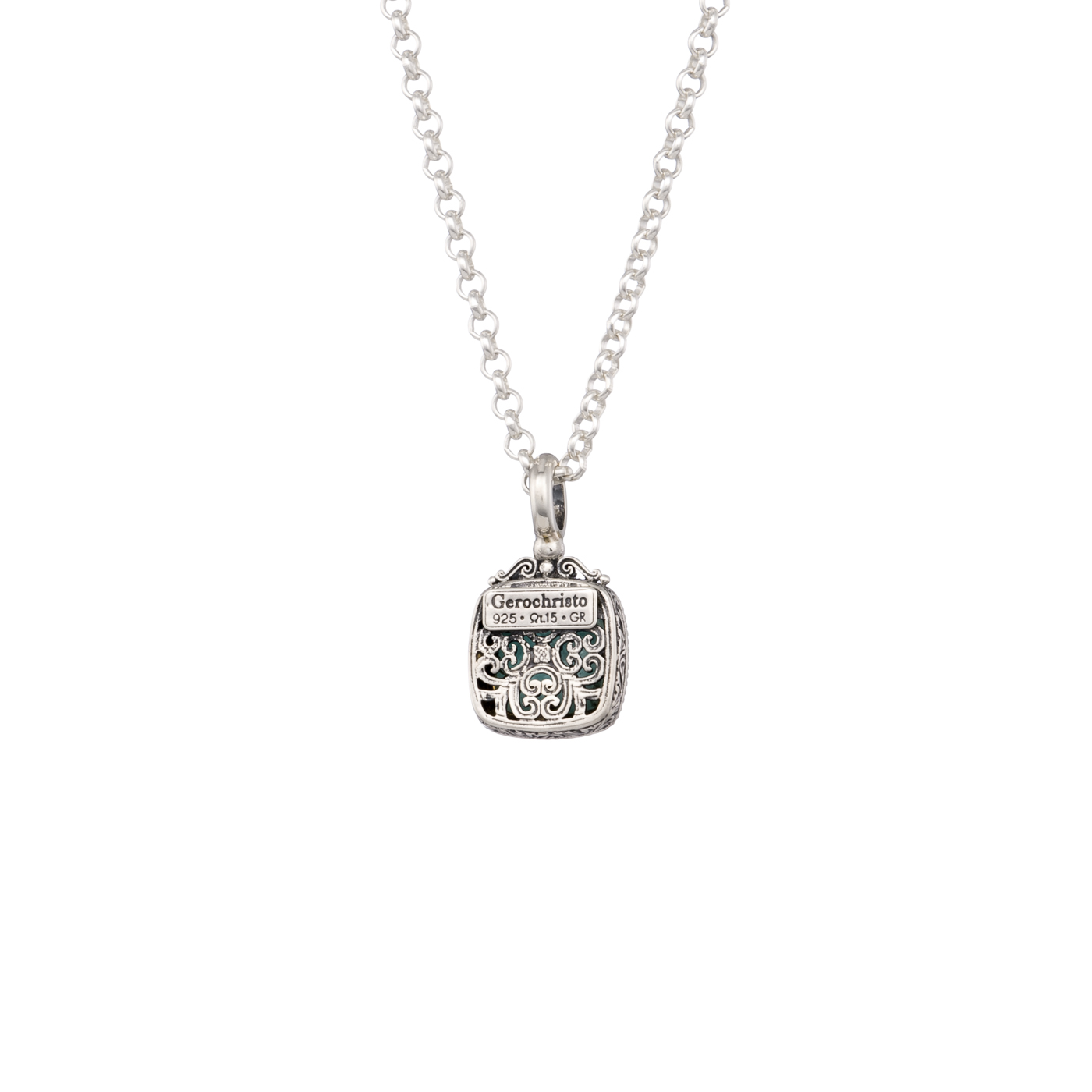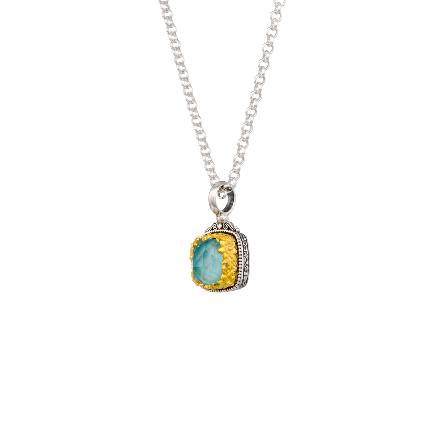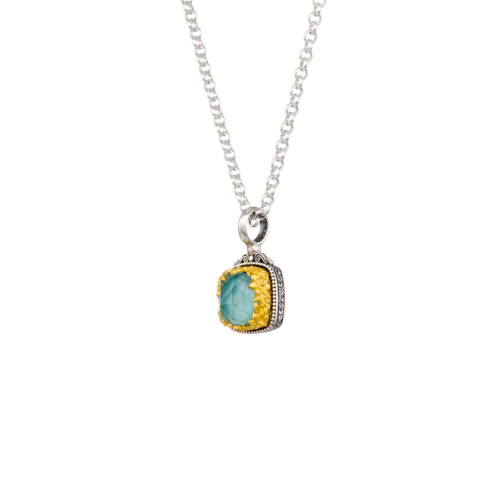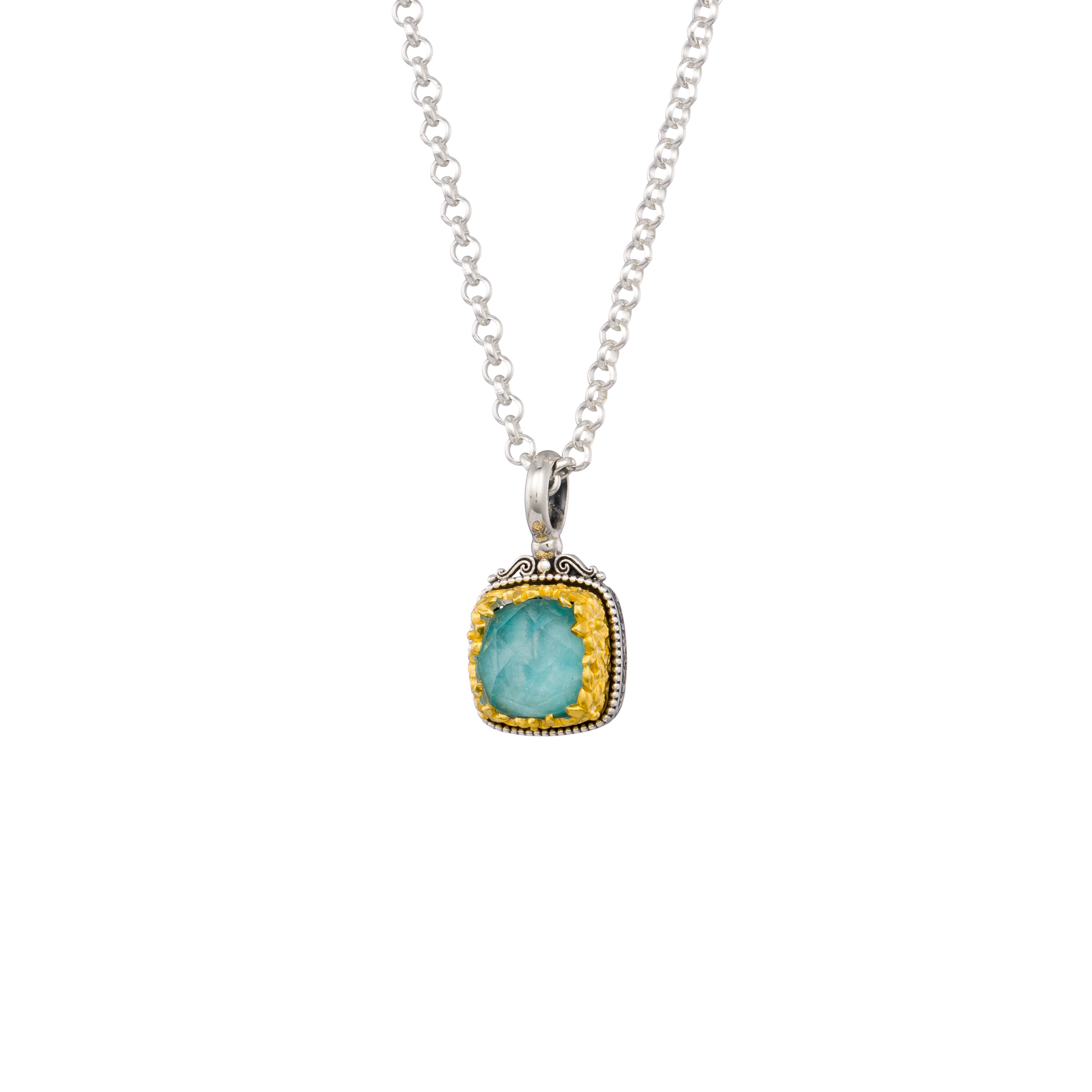Greek Jewelry, Square Pendant in Sterling Silver 925 with Gold plated parts