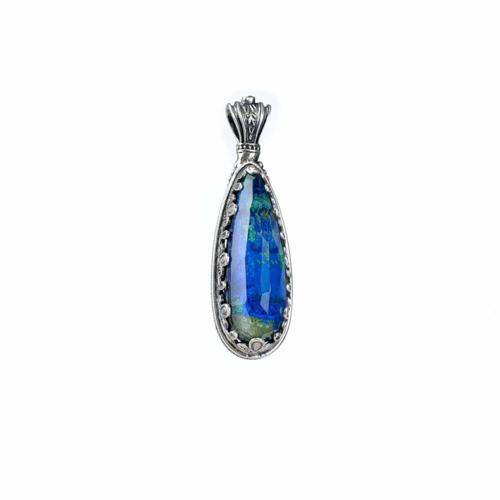 Greek Jewelry, Tear-Drop Color Pendant in Sterling Silver 925