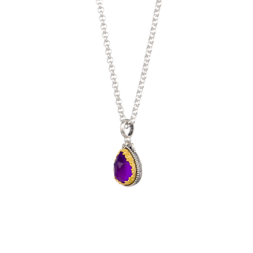 Greek Jewelry, Tears Pendant in Sterling Silver 925 with Gold plated parts