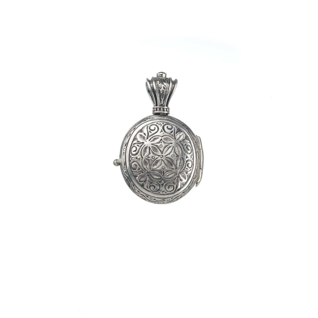 Greek Jewelry, Oval Locket Pendant Small Photo Ruby Byzantine in Sterling Silver 925