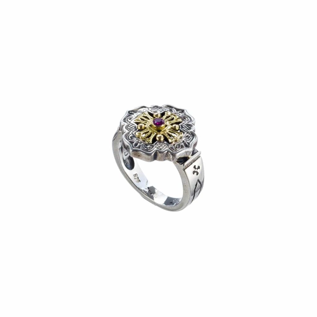 Byzantine Ring for Women’s Ruby 18k Yellow Gold and Sterling Silver 925
