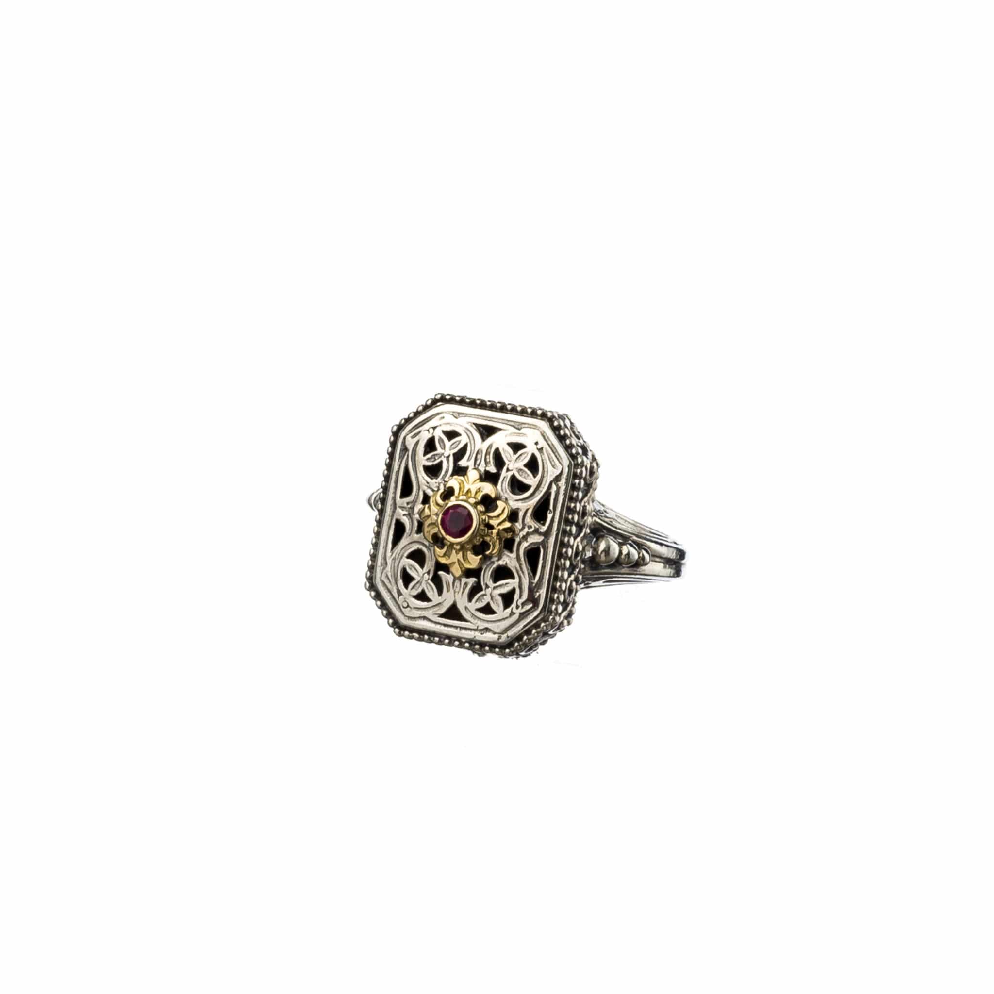 Greek Jewelry, Byzantine Ring Ruby for women’s 18k Yellow Gold and Sterling Silver 925