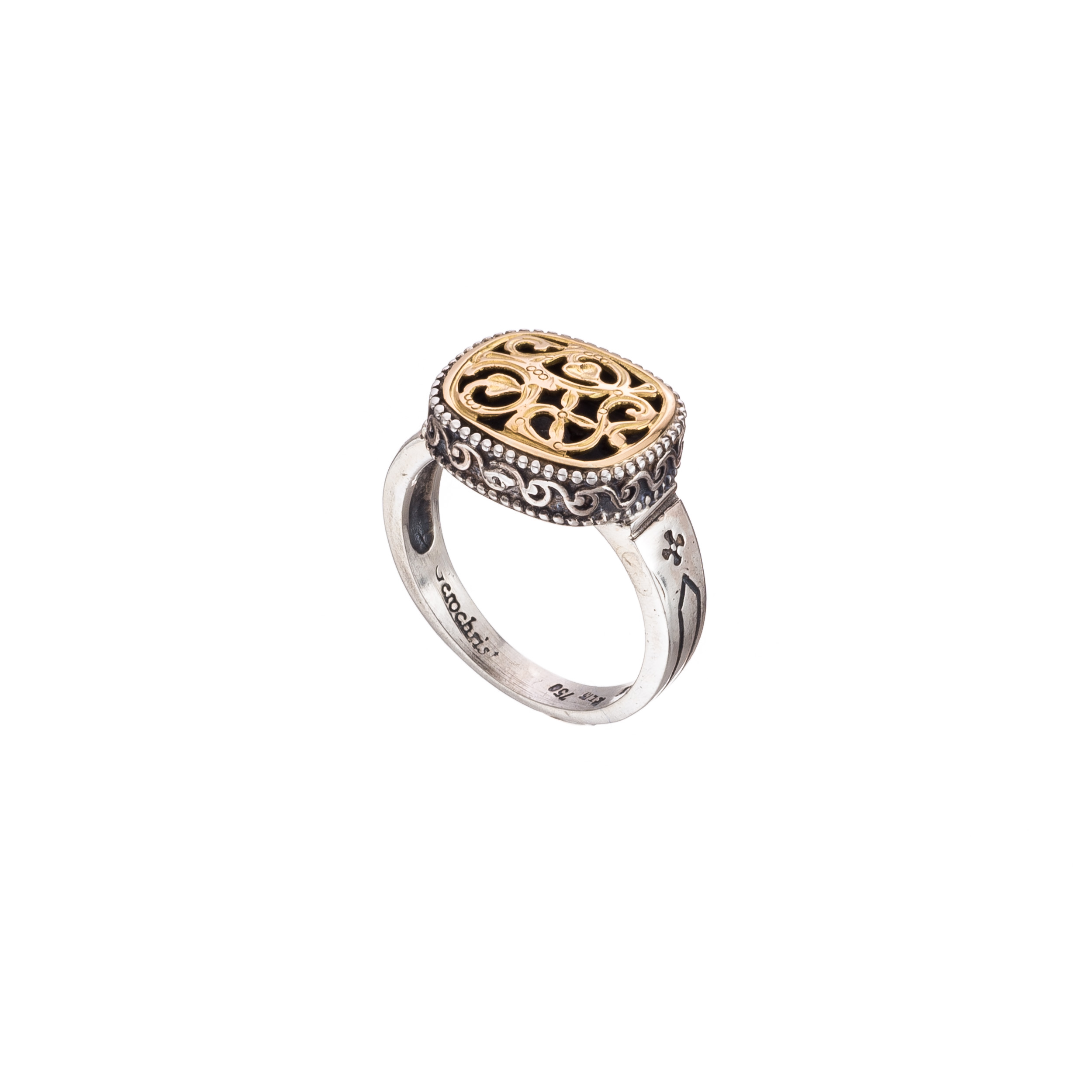 Greek Jewelry, Flower Byzantine Ring for women’s 18k Yellow Gold and Sterling Silver 925