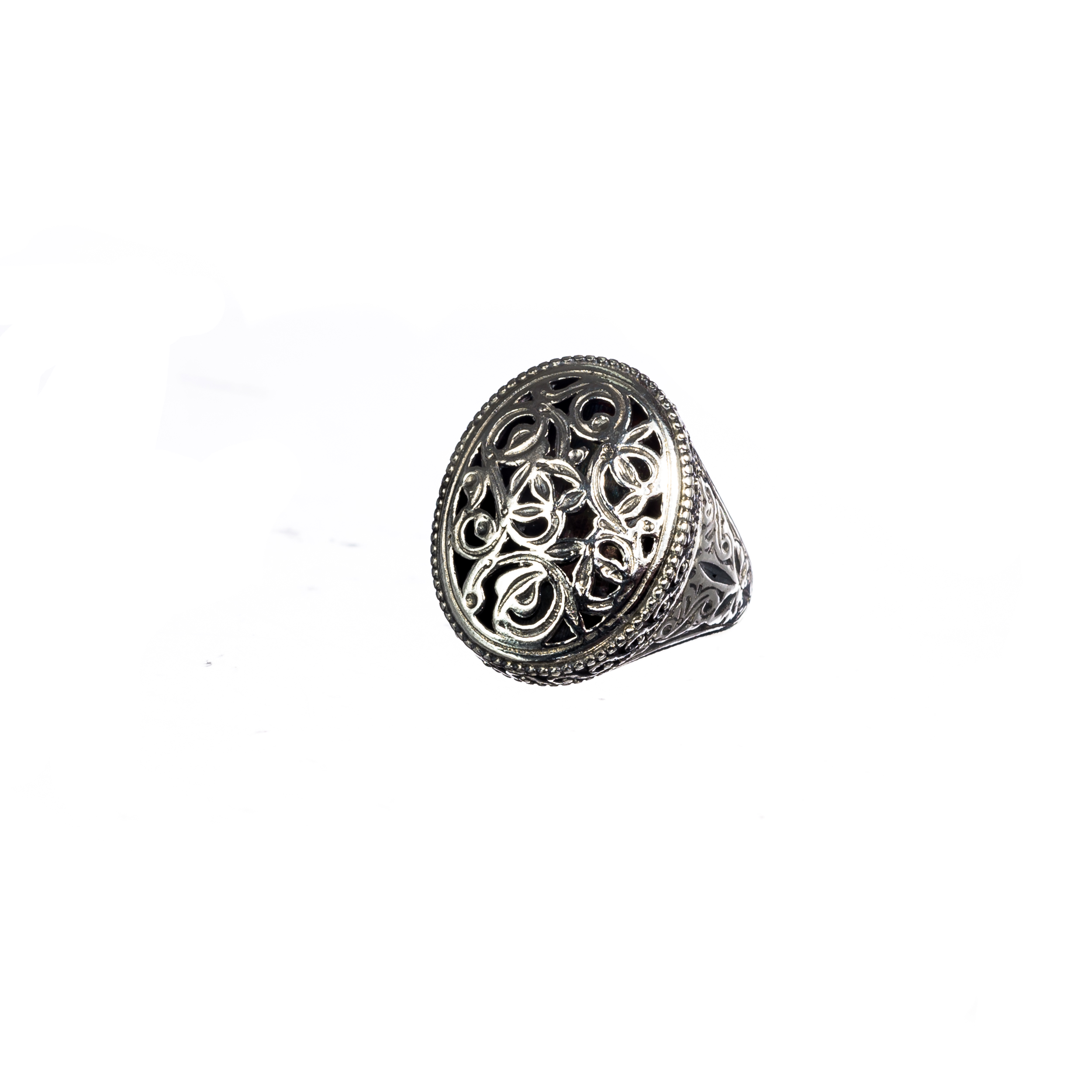 Greek Jewelry, Oval Flower Byzantine Ring for women’s in Sterling Silver 925