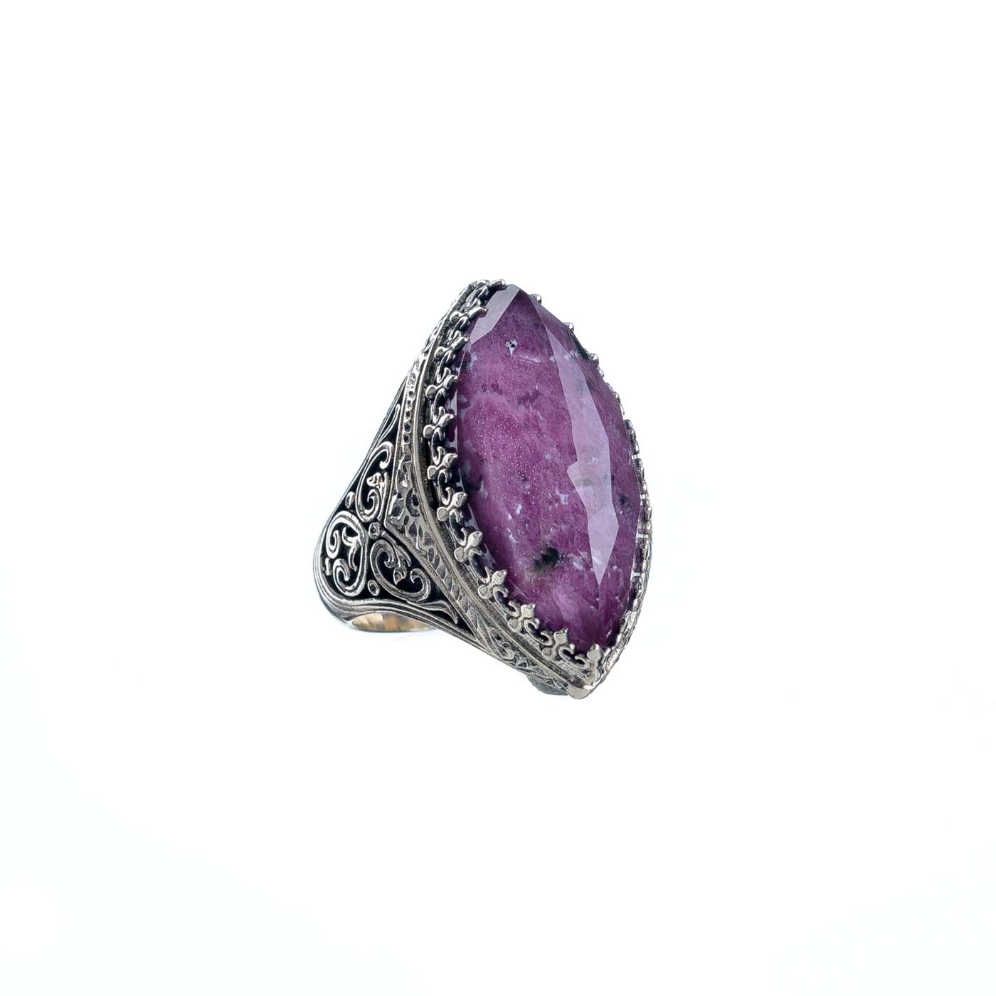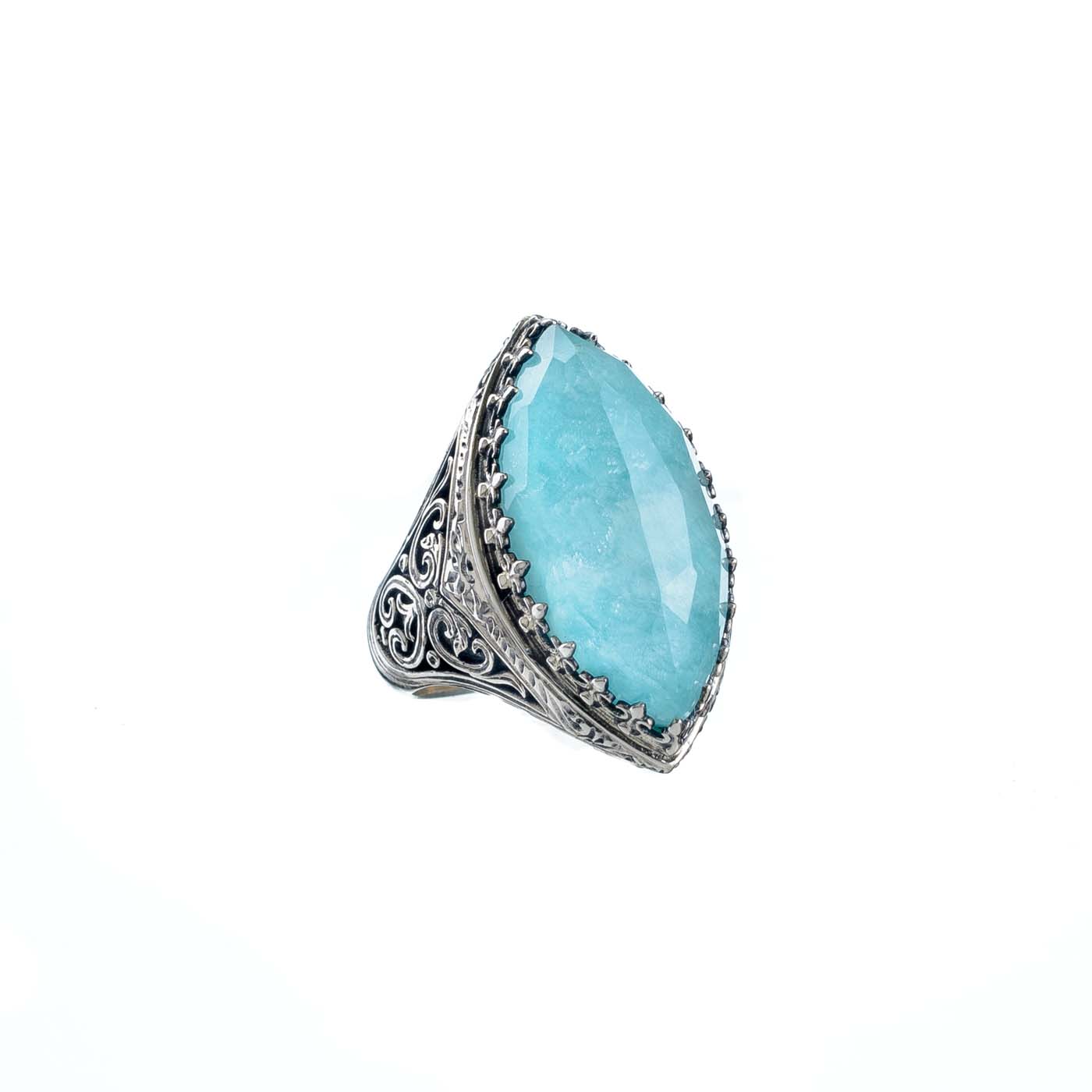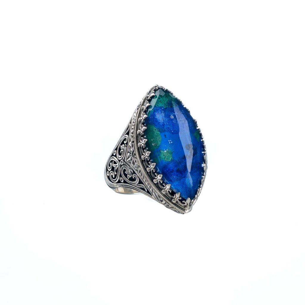 Greek Jewelry, Color Navette Ring in Sterling Silver 925
