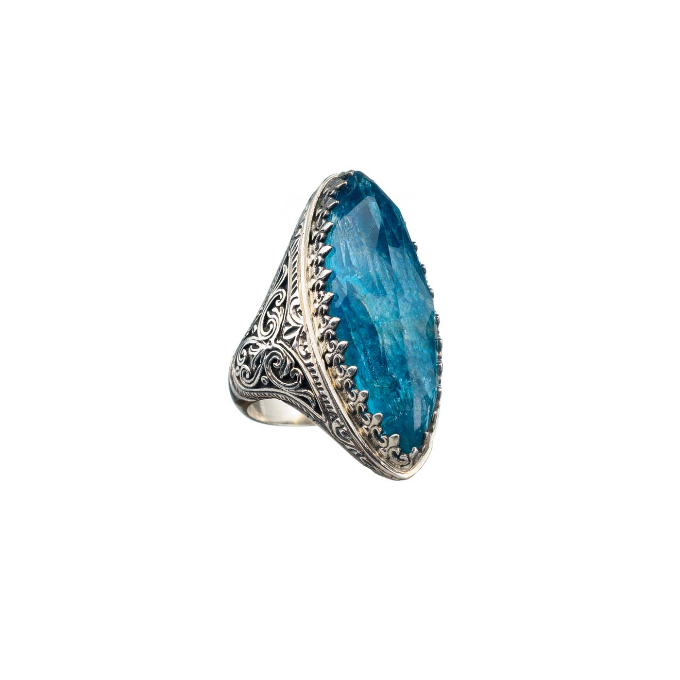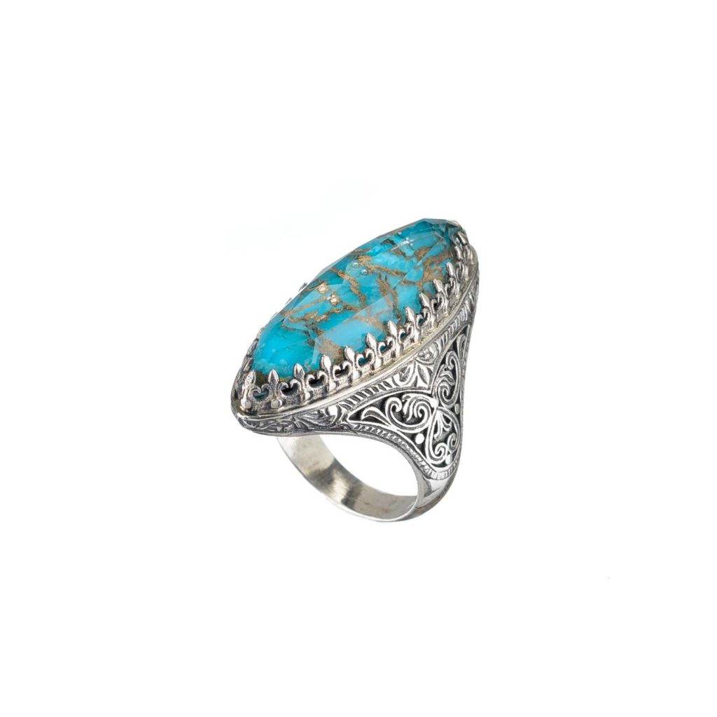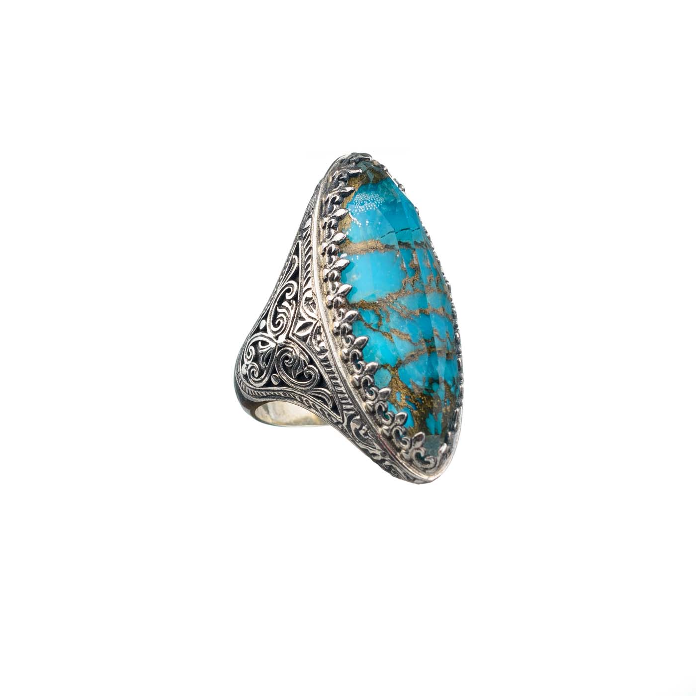 Greek Jewelry, Color Navette Ring in Sterling Silver 925