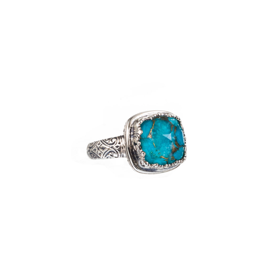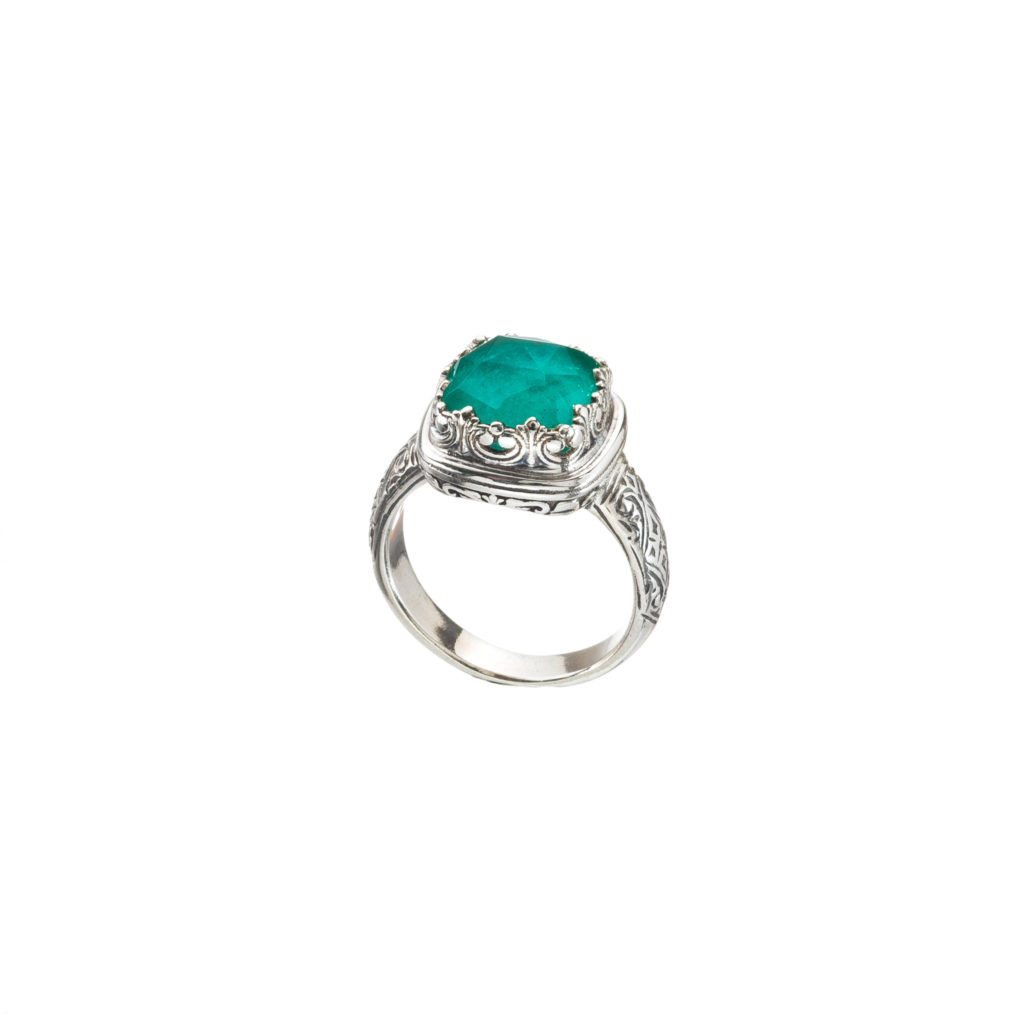Greek Jewelry, Square Color Ring in Sterling Silver 925