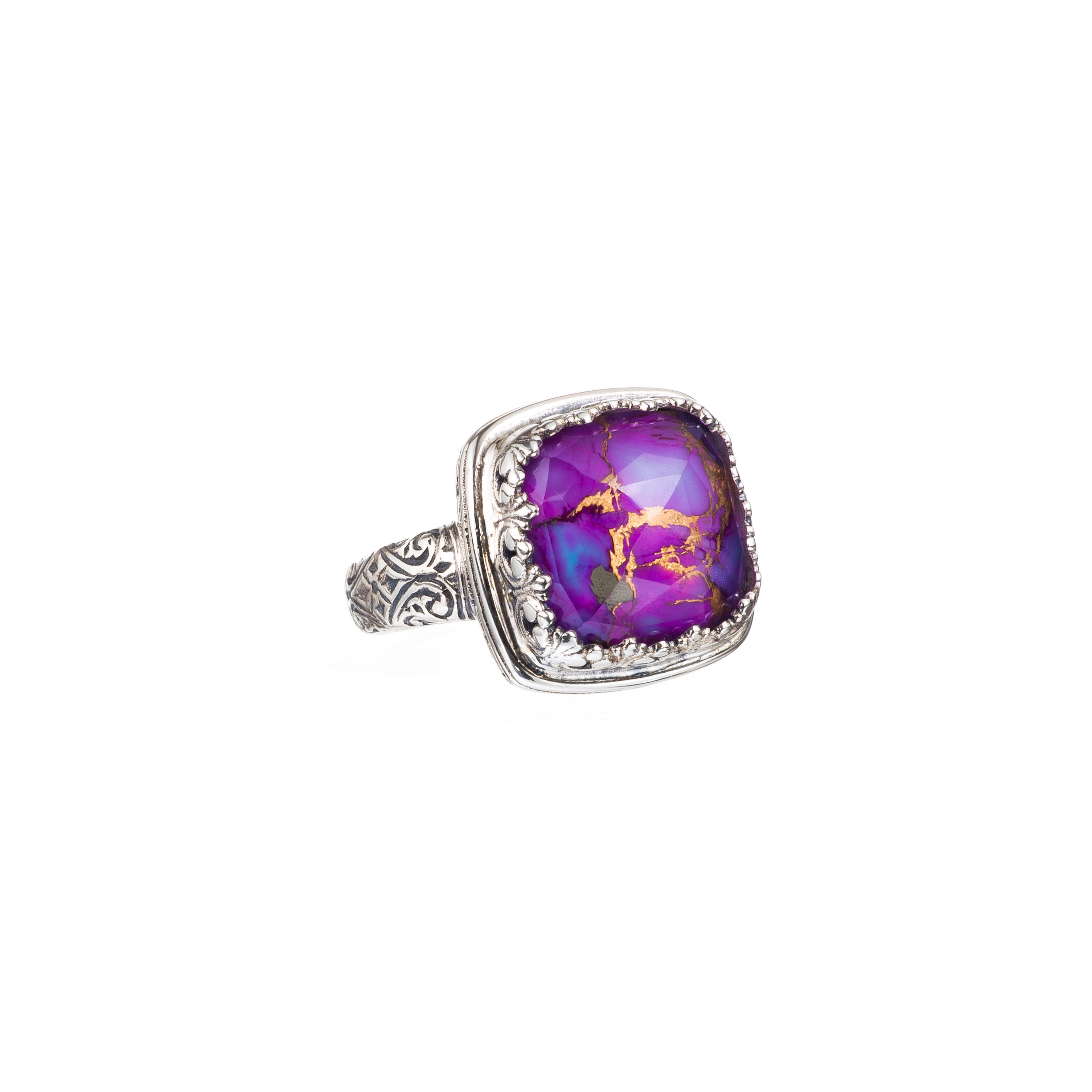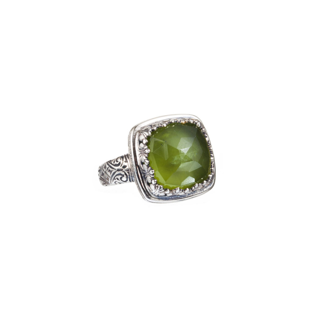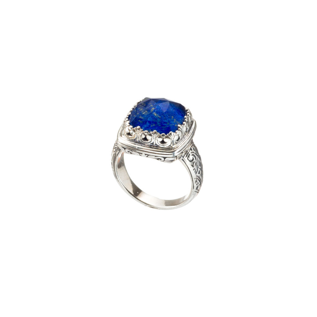 Greek Jewelry, Color Square Ring in Sterling Silver 925