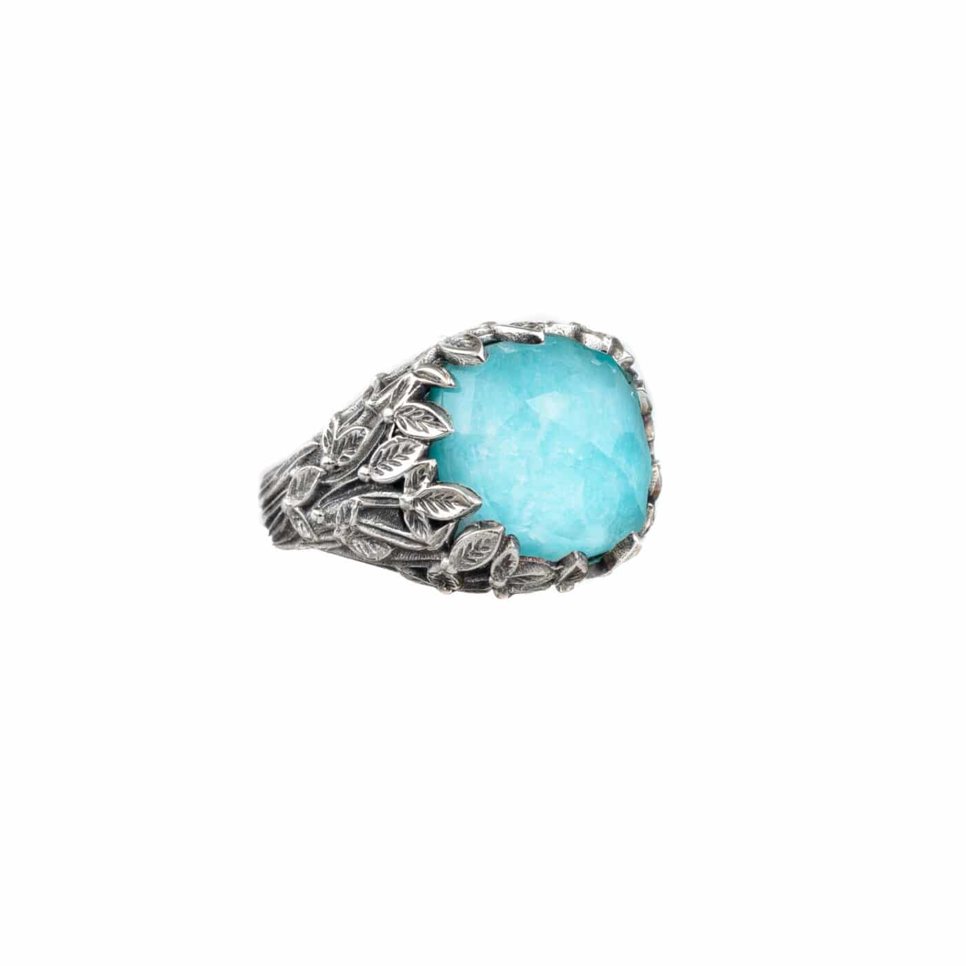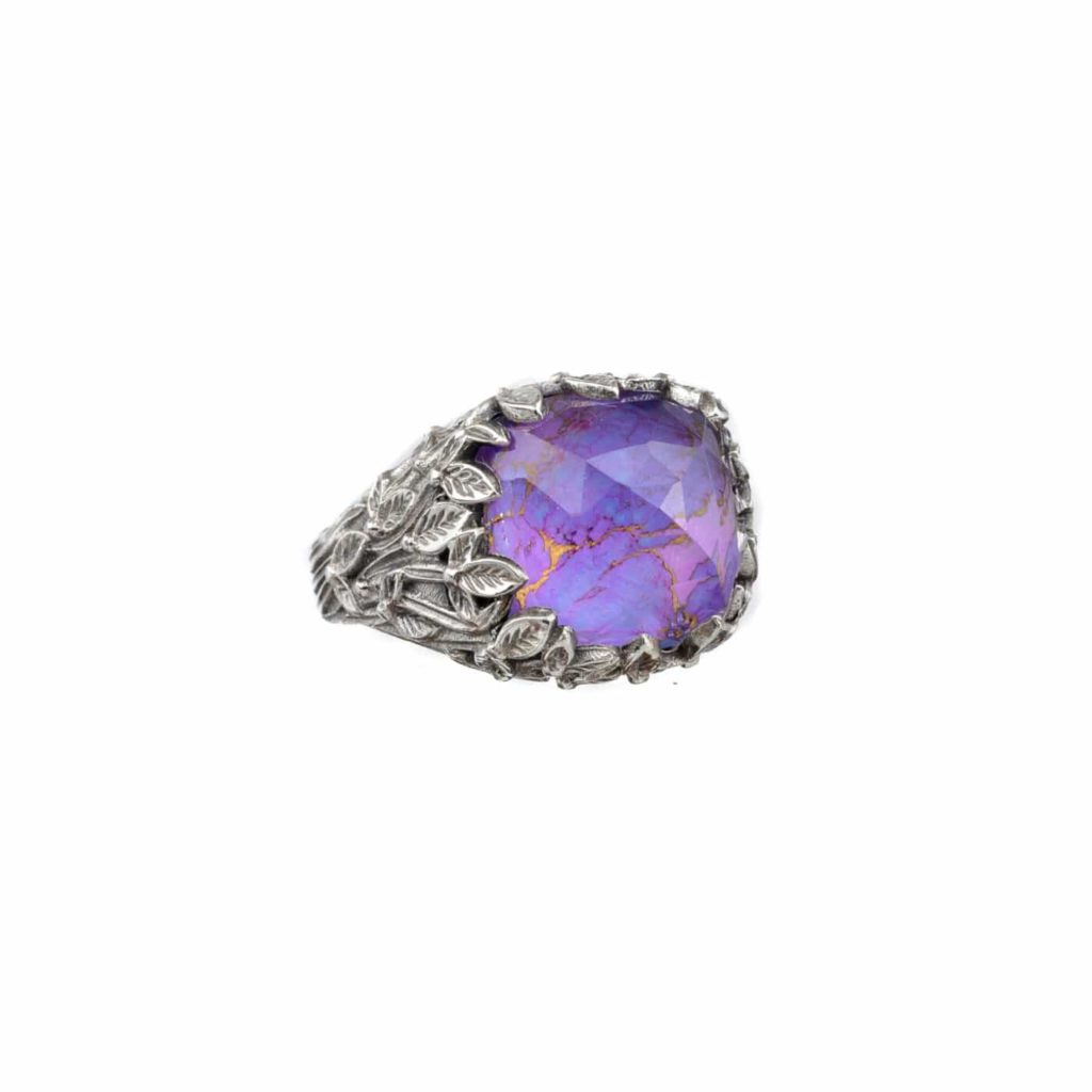 Greek Jewelry, Cyclamen Ring Square Color in in Sterling Silver 925