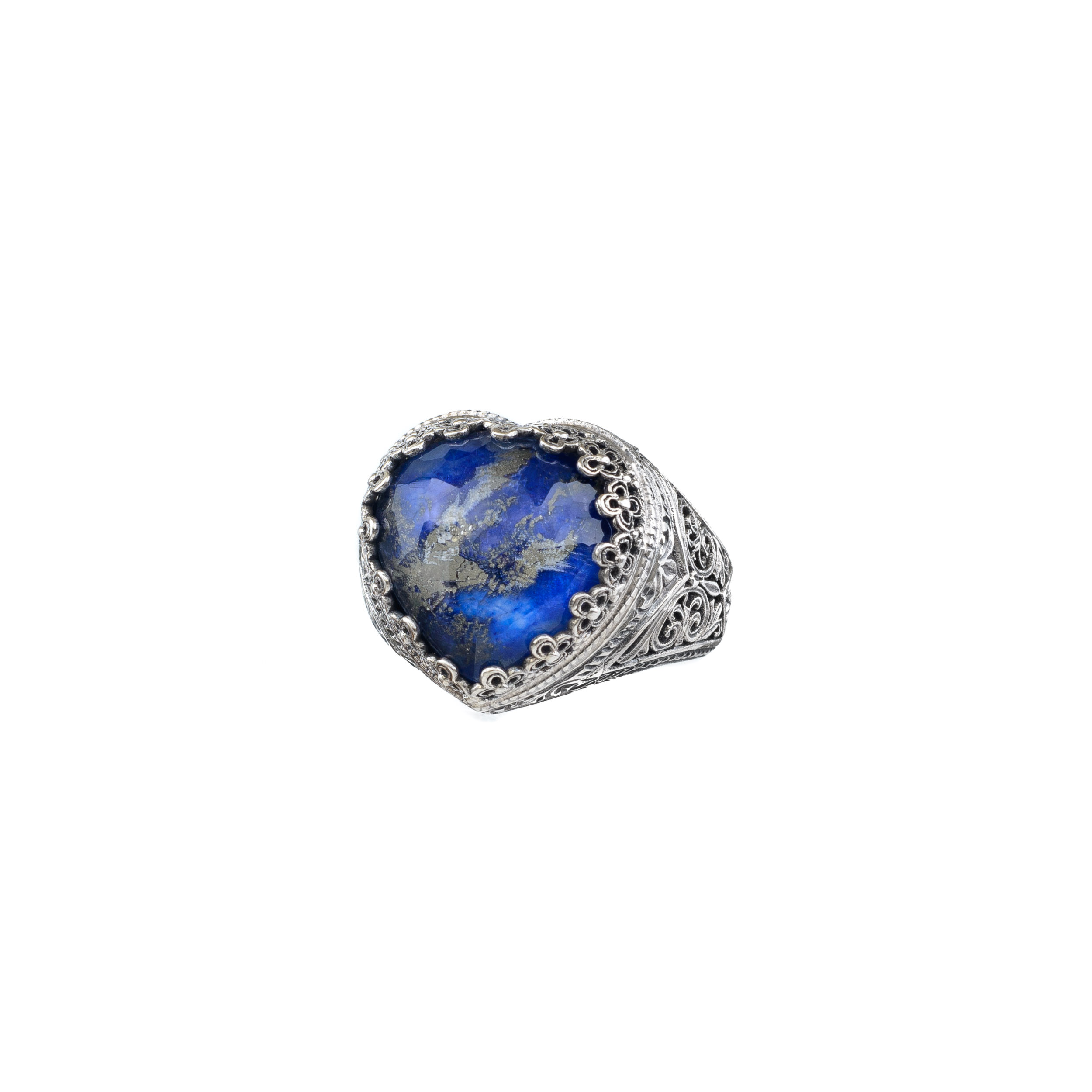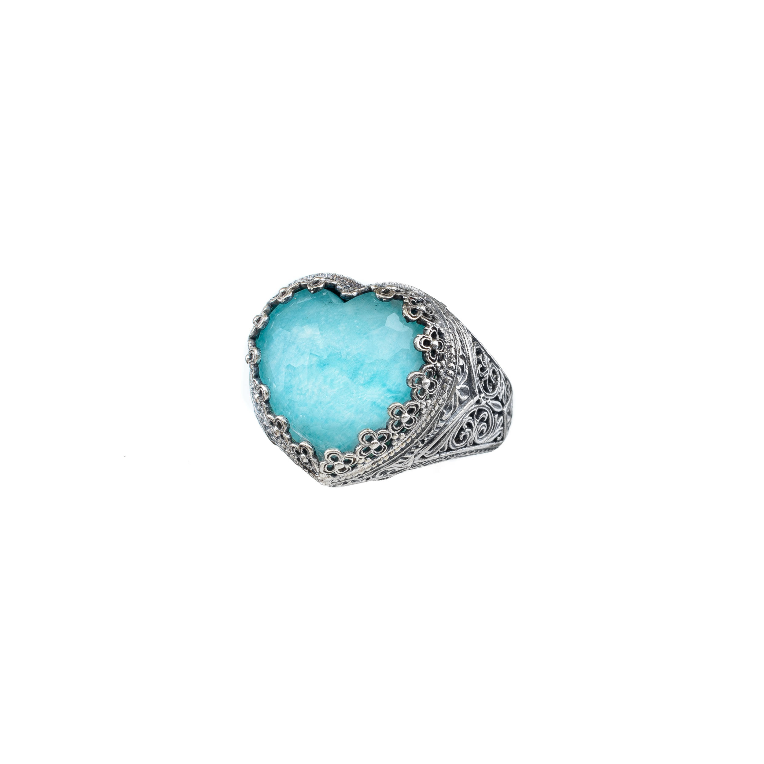 Greek Jewelry, Heart Color Ring in Sterling Silver 925
