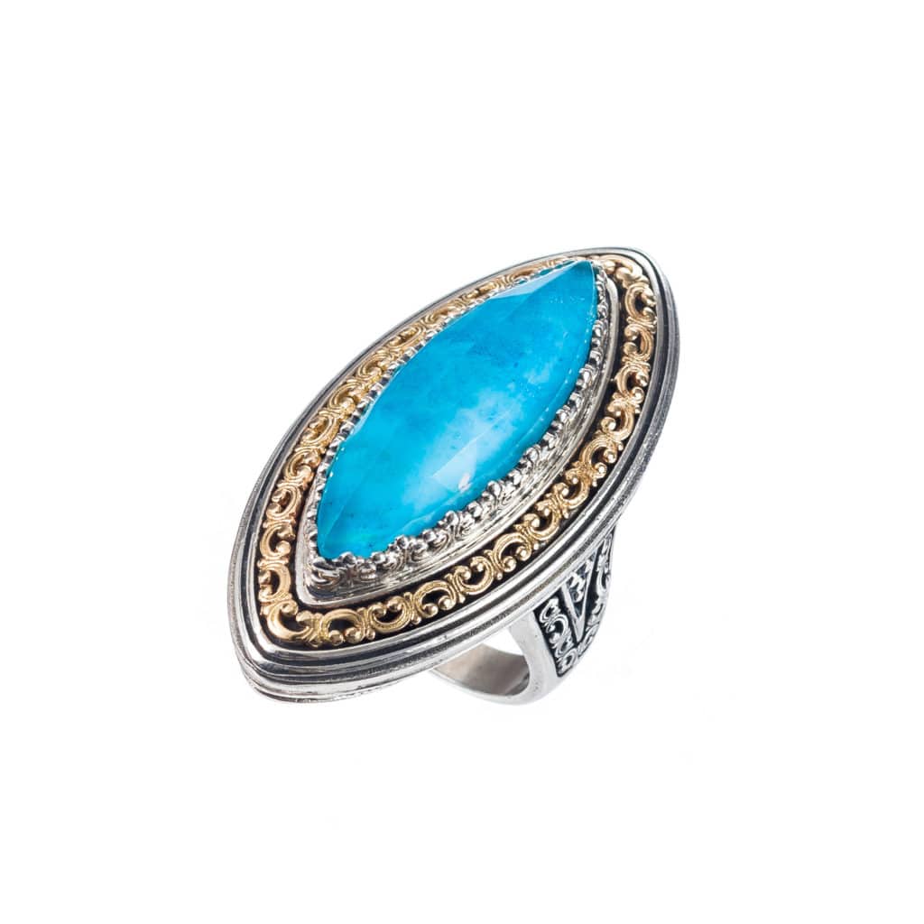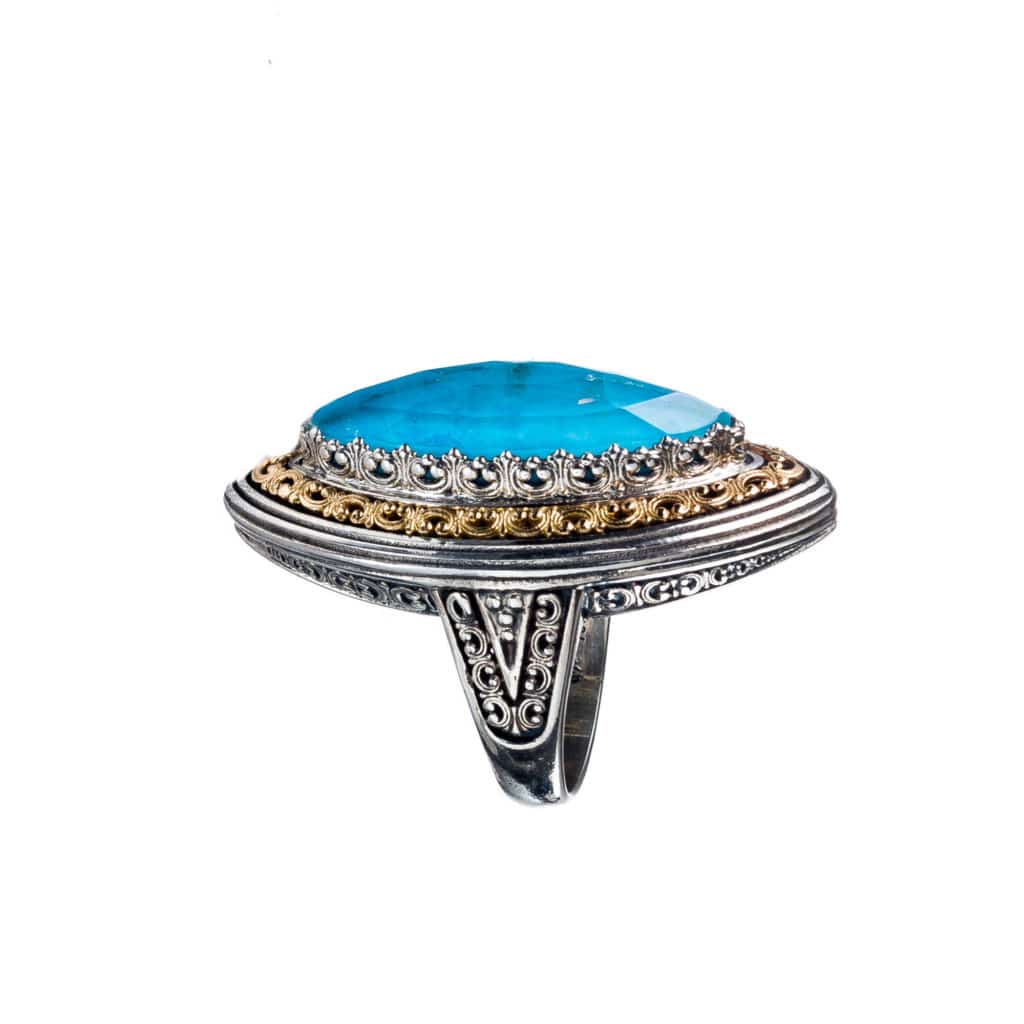 Greek Jewelry, Large Ring Color in k18 Yellow Gold and Sterling Silver 925
