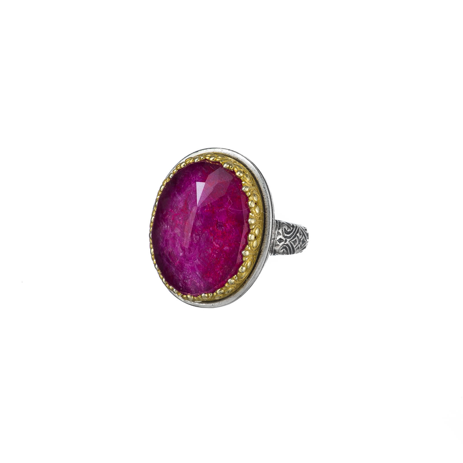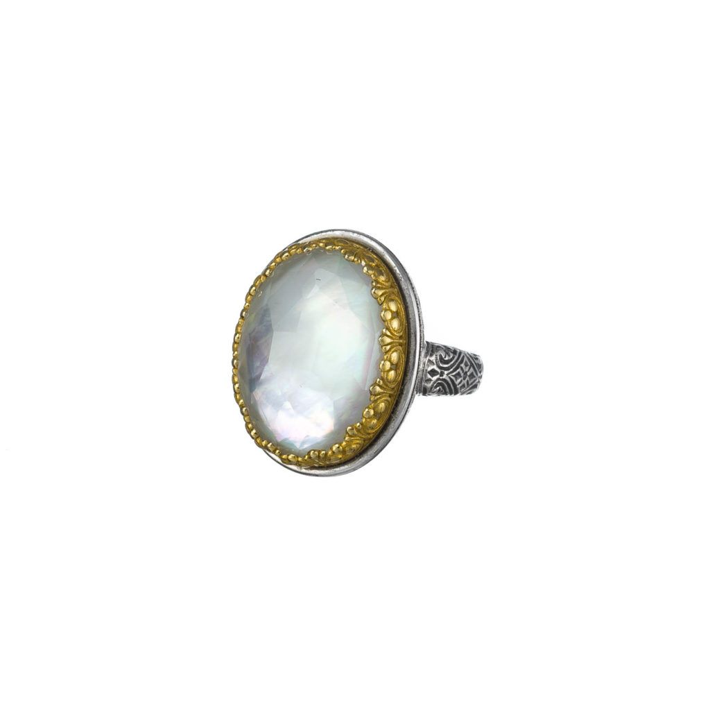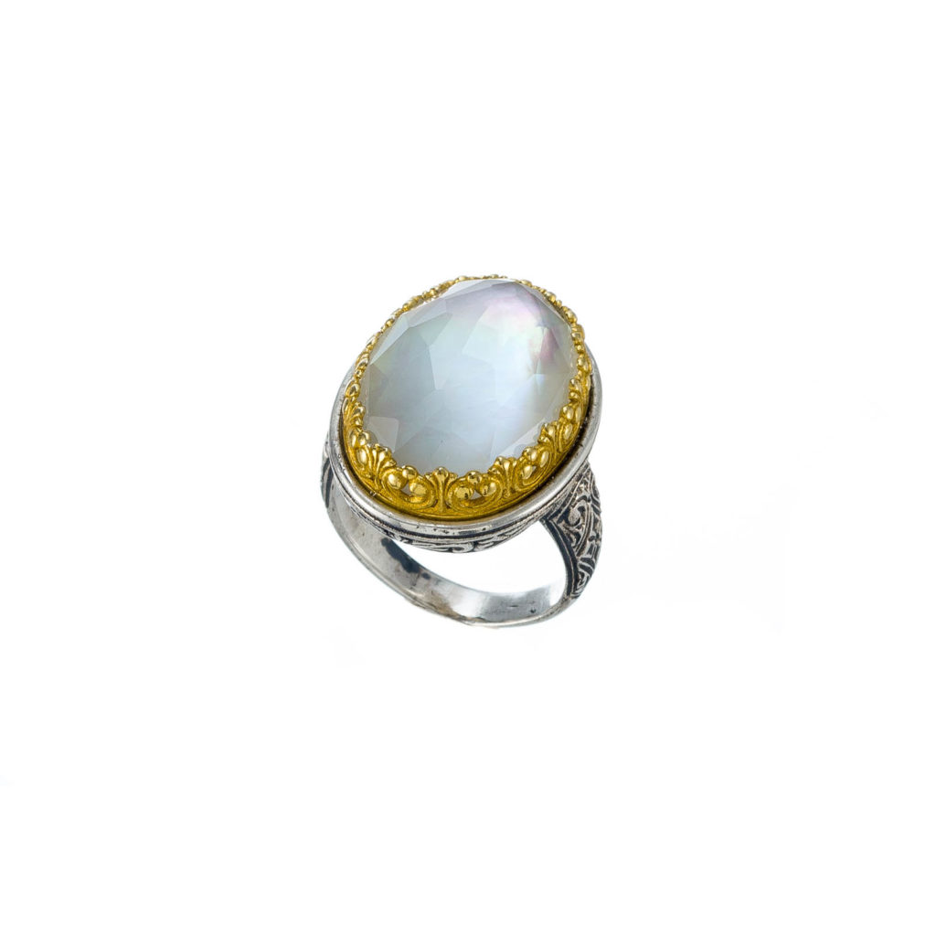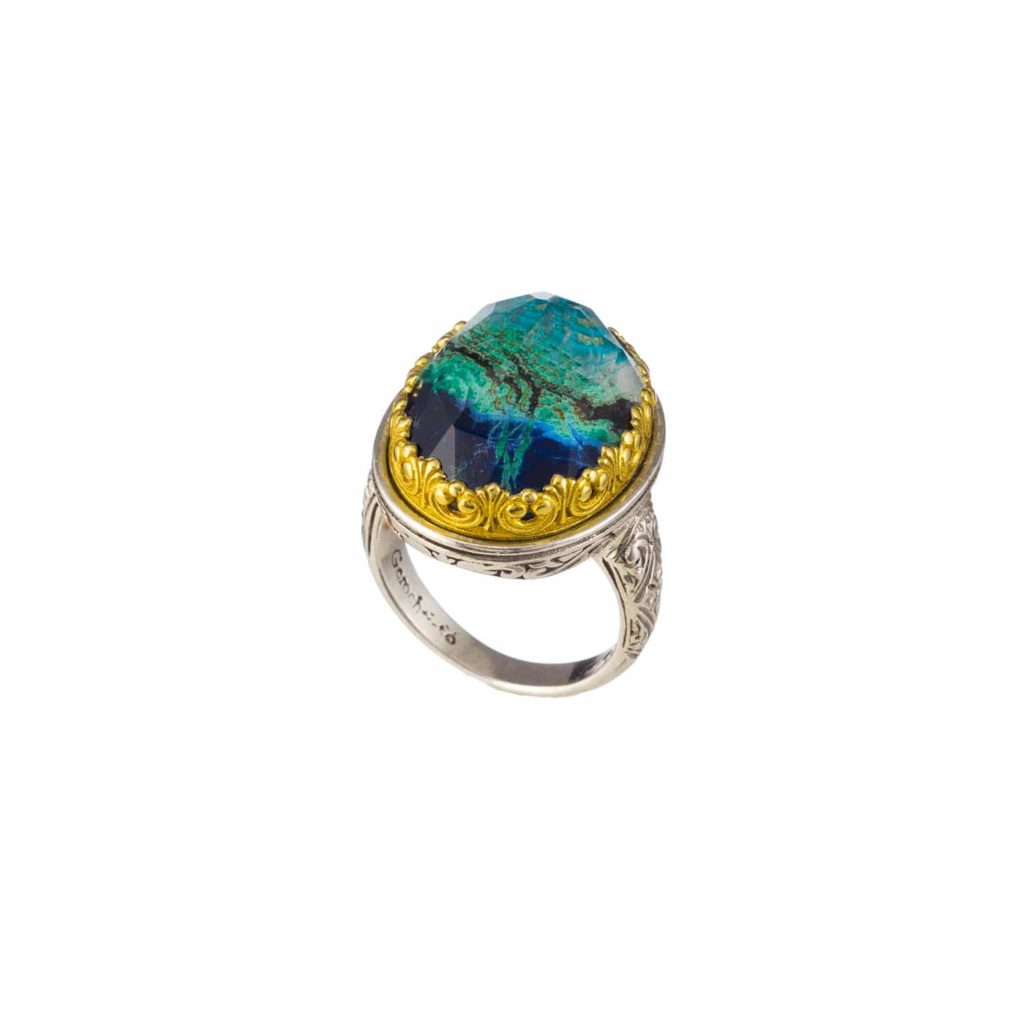 Greek Jewelry, Oval Color Ring in Sterling Silver 925 with Gold Plated parts