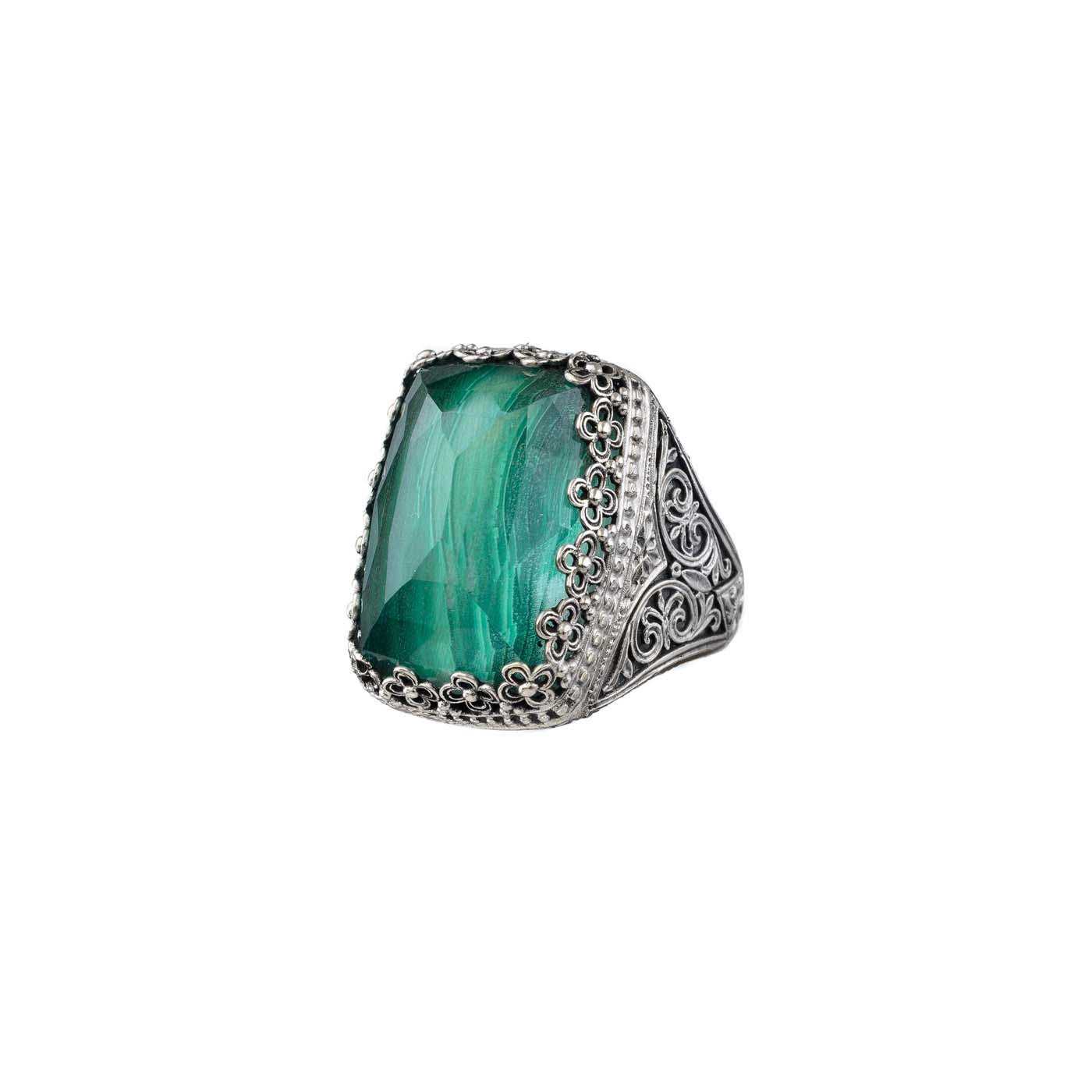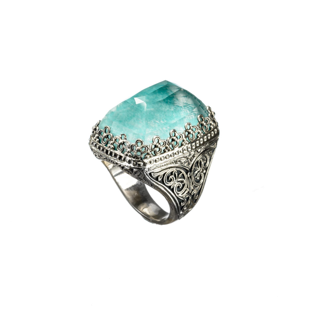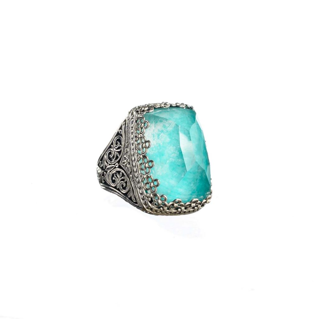 Greek Jewelry, Rectangular Color Ring in Sterling Silver 925