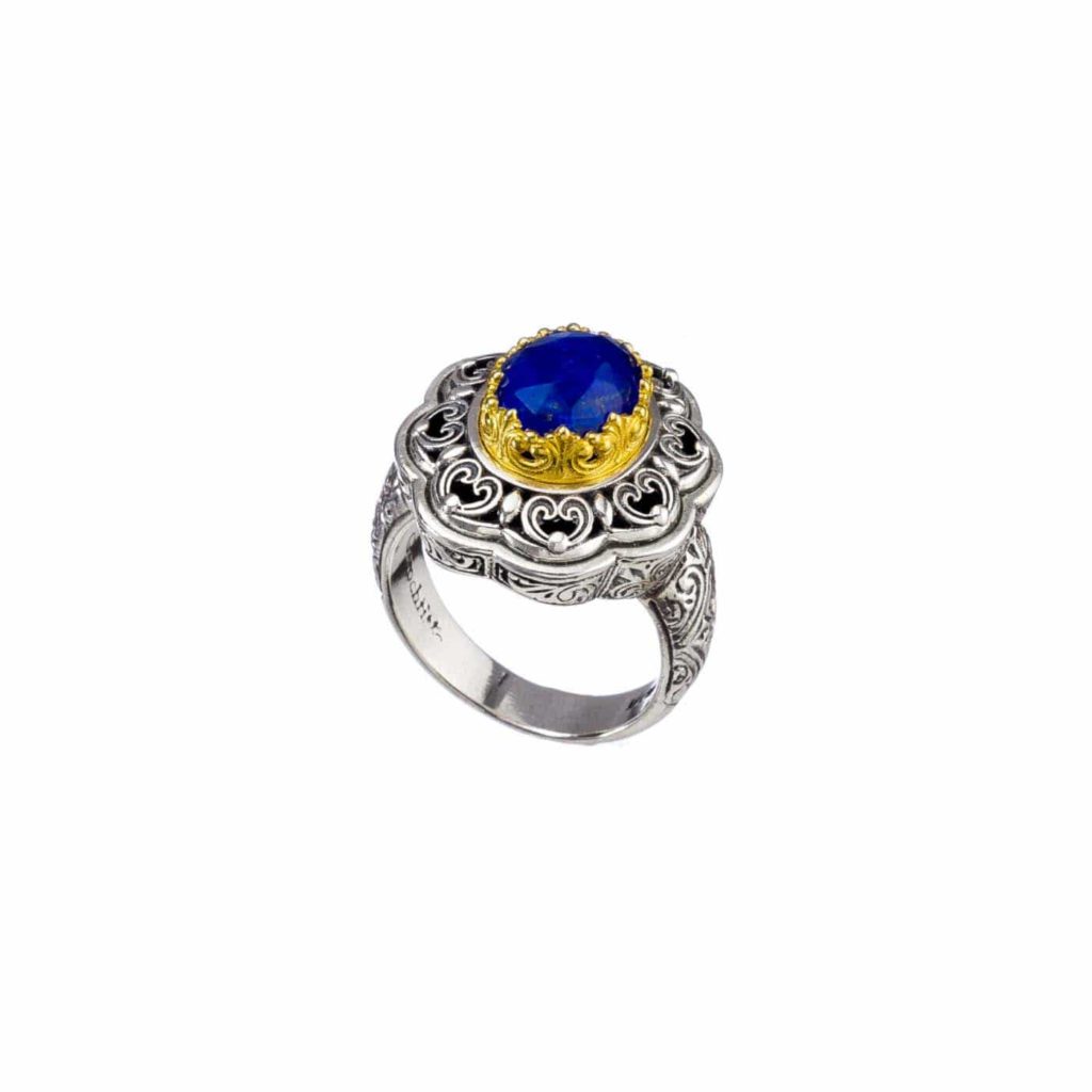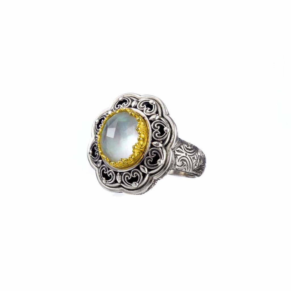 Greek Jewelry, Round Color Ring Sterling Silver 925 with Gold Plated parts