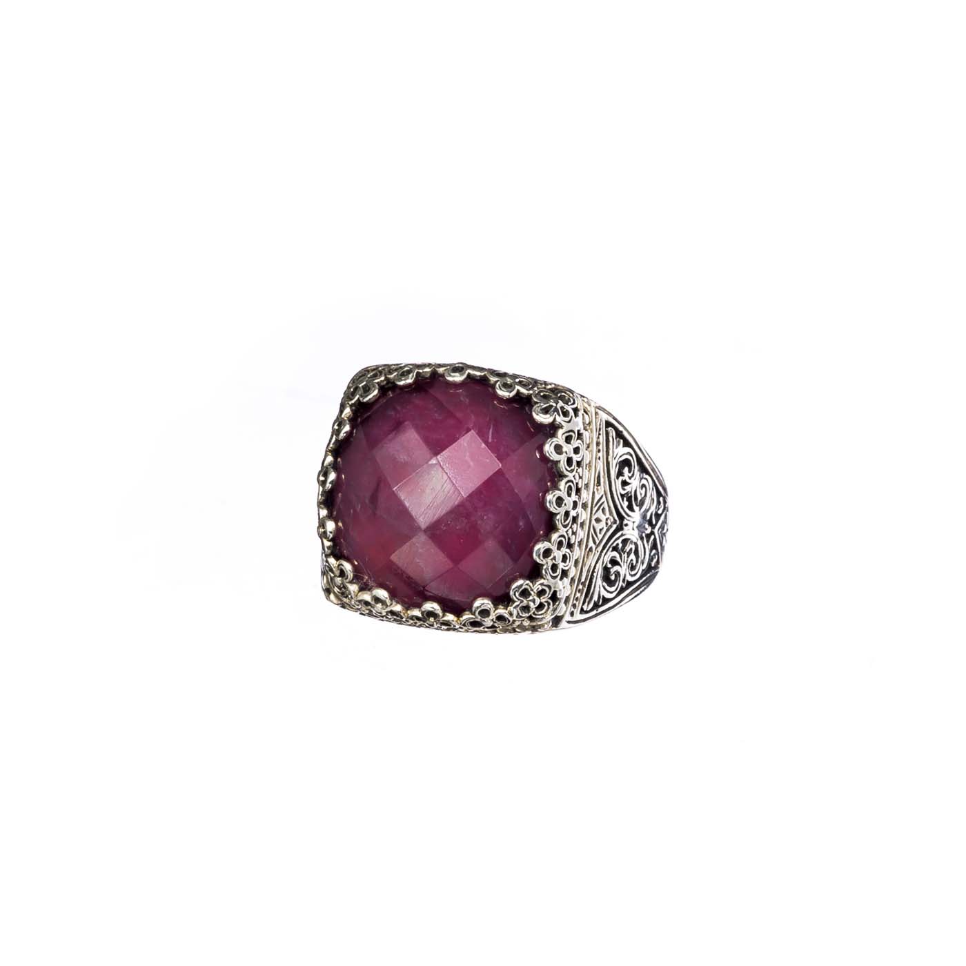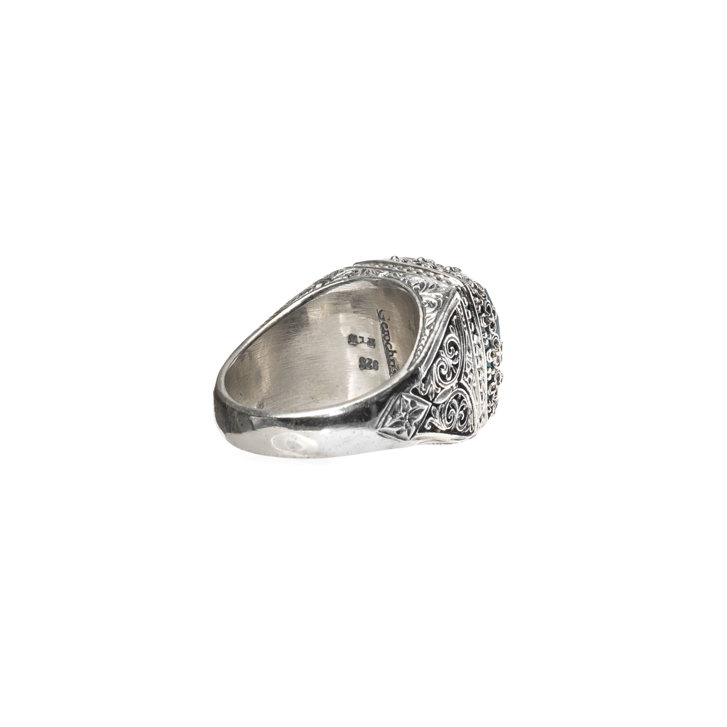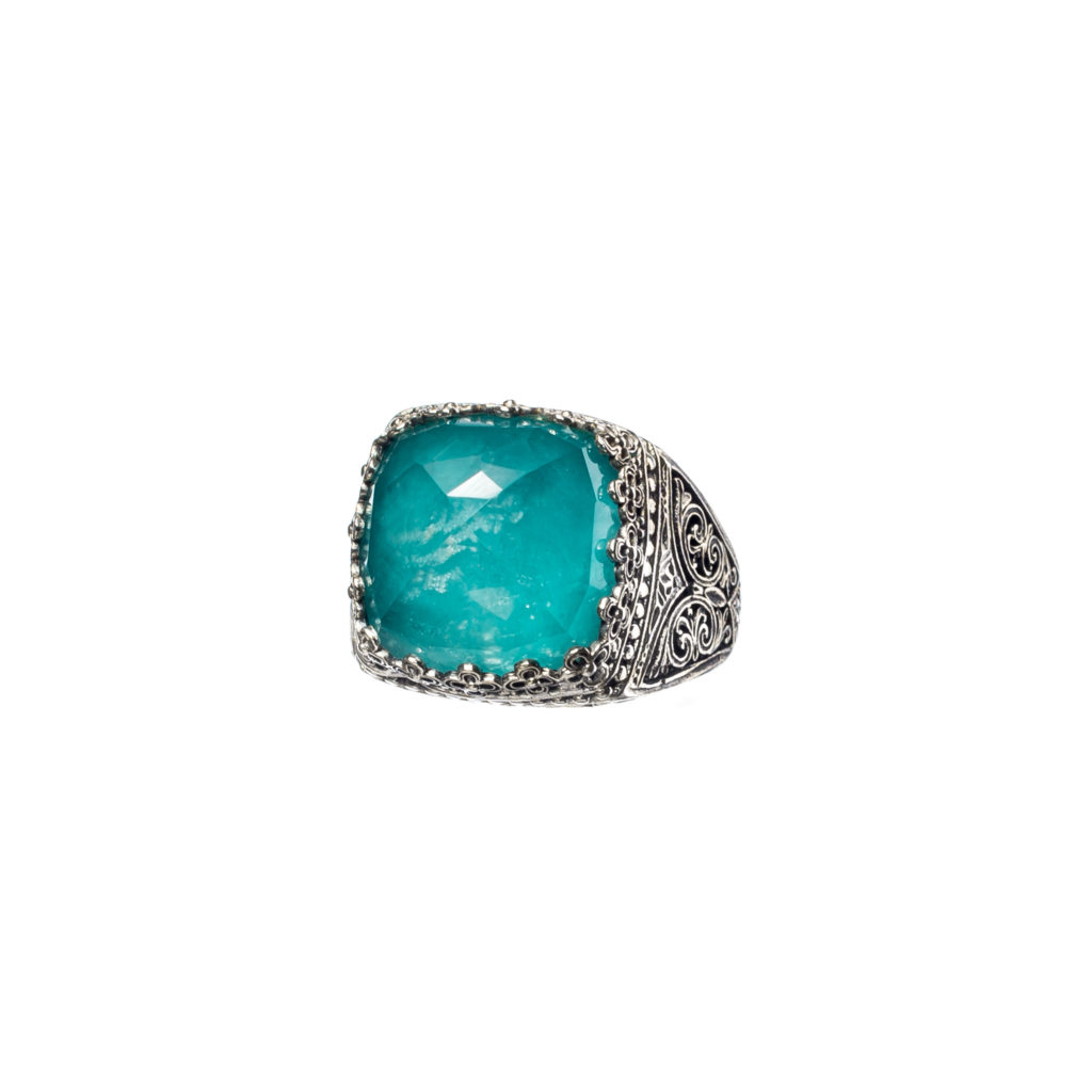 Greek Jewelry, Square Color Ring in Sterling Silver 925