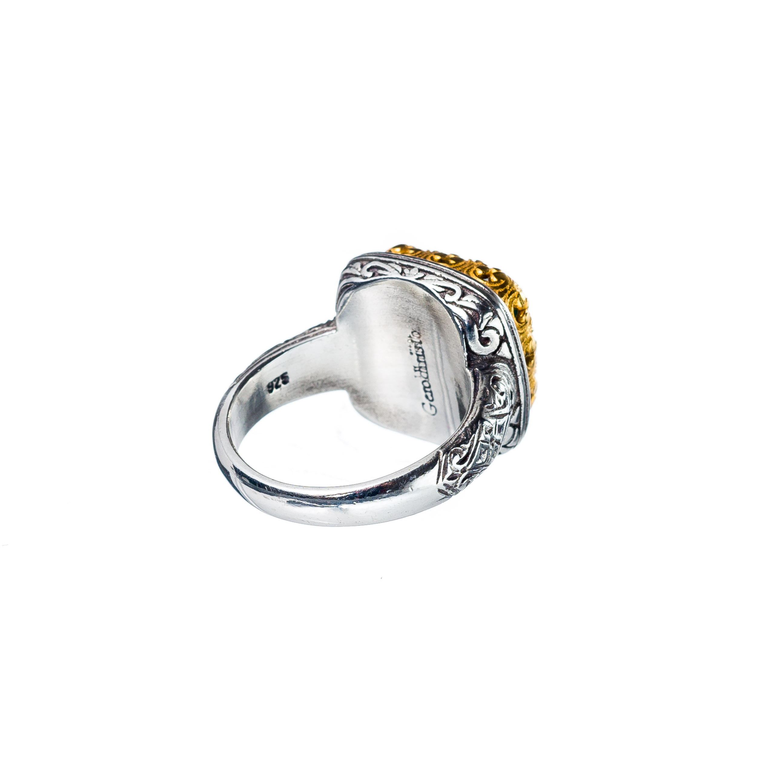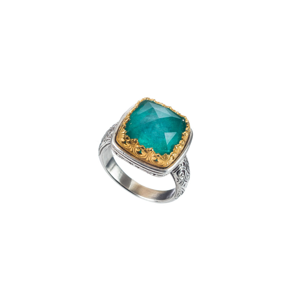 Greek Jewelry, Square Color Ring Sterling Silver 925 with Gold Plated parts